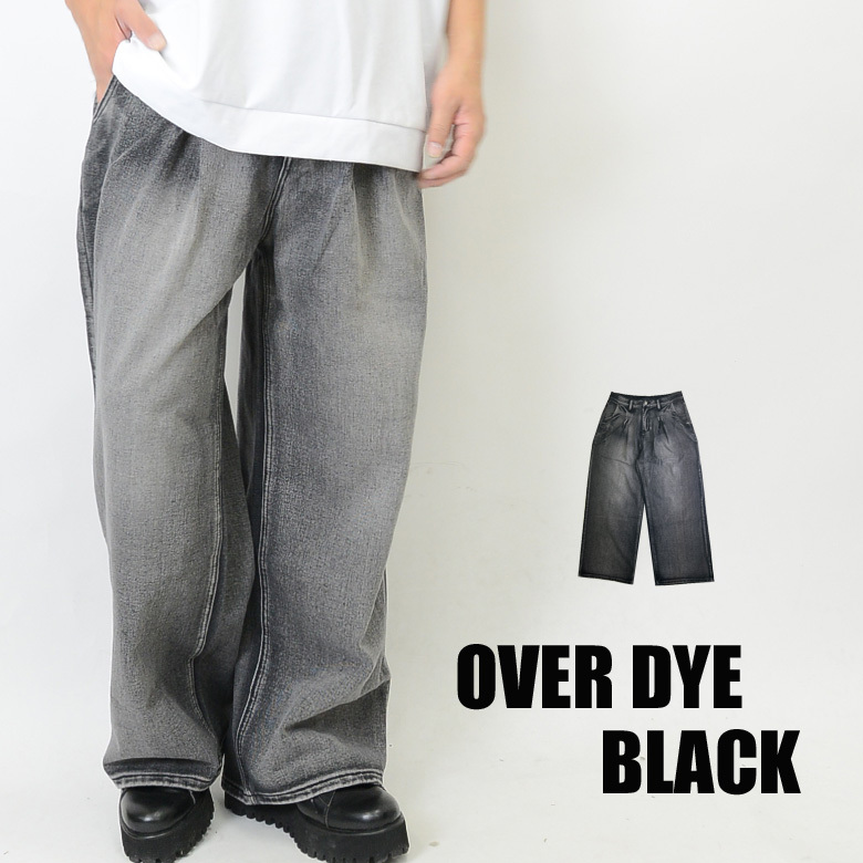 ワイドデニムパンツ ワイドパンツ メンズパンツ ビックデニムパンツ デニムパンツ rv8801 新品 オーバーダイブラック L