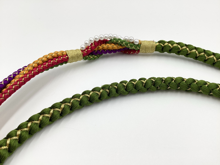 コメント | 新品の和装小物振袖用の丸飾り付帯締めです。 振袖を華やかにより美しくする為の帯締め、 帯の色柄に合わせてアクセント、コーディネート! パールが飾りに入り、飾り結びができ豪華に、 色鮮やかに演出できる帯締めです。 今お持ちの帯〆から色柄を変えるだけで、 雰囲気も気持ちも変わります。 最近のコーディネートは、小物の色を合わせないのが、お洒落な傾向です。 |