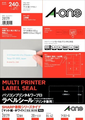 ◆手間のかかる宛名や表示ラベルが手軽にキレイに作れます◆多くのパソコンソフトで推奨されています◆いろいろなプリンタで印刷できます◆インク対応:顔料対応/染料対応 / ■ 仕 様 ■・入り数:20シート(240片)・面付き:12面(2列×6段)・一片サイズ:84×42mm・素材:上質紙・厚み:125g/m2(0.13mm)/薄手・シートサイズ:A4判 (210×297mm)・対応プリンタ: インクジェット カラーレーザー モノクロレーザー モノクロコピー マイクロドット 熱転写 ドット・用紙特性:マット・インク対応:顔料対応/染料対応 / ※対応ソフトの確認はメーカーホームページにてご確認ください。 |