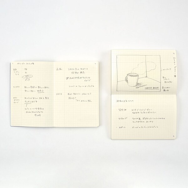 ○ストレスなく書ける180度開く糸綴じ製本。書き心地のいいオリジナル用紙を使用しています。
