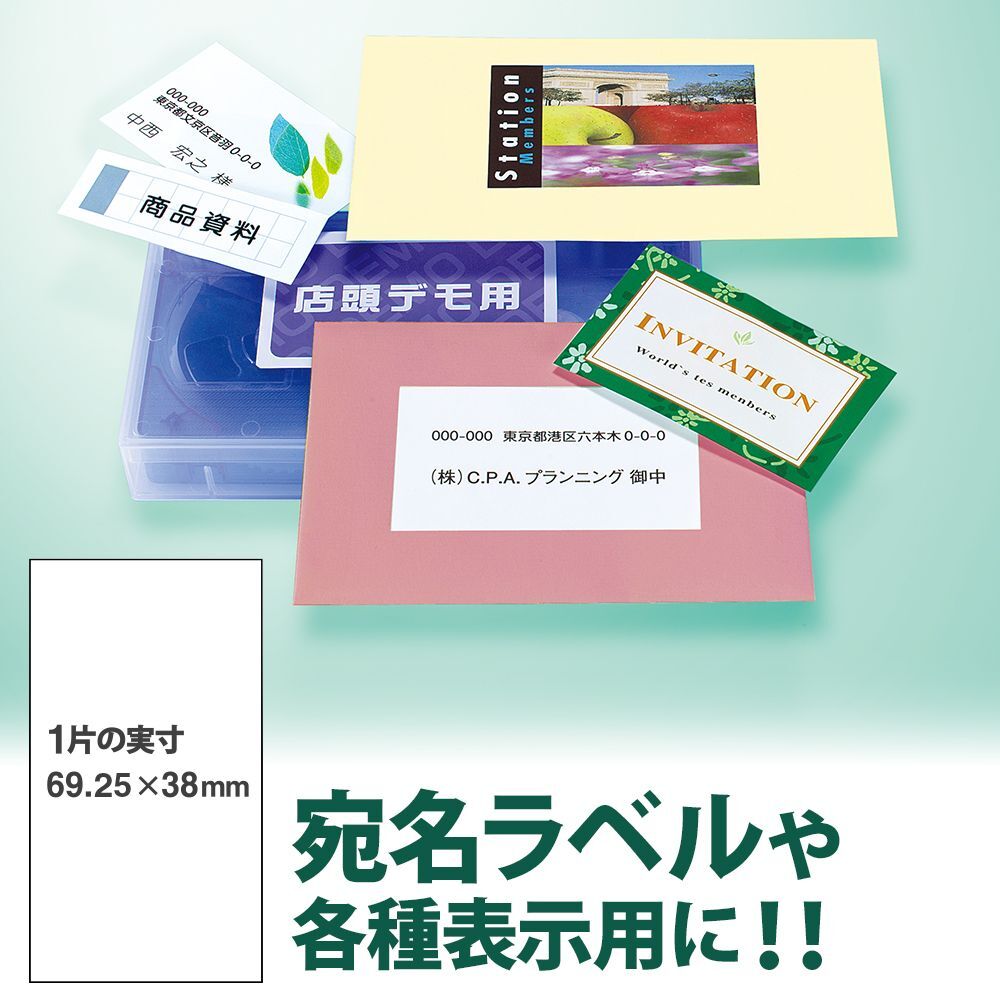 DMの宛名ラベルや小包、ファイルや収納什器の分類ラベル、容器やパッケージの表示、オリジナルシールまで多用途に使えます。