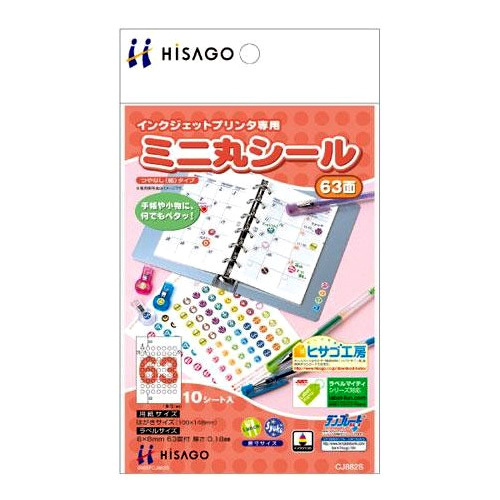 製品概要:イラストなどの印刷に適しているシールです。ハガキサイズに63面、10シート入りです。