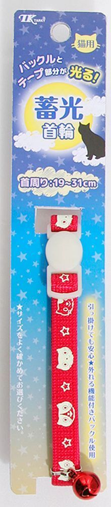 暗闇で光る蓄光タイプのセーフティ首輪。プラスチックパーツと柄が光る。