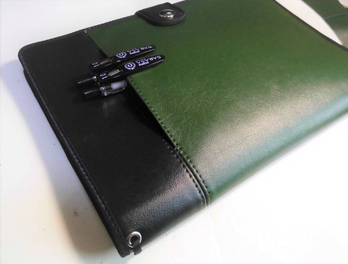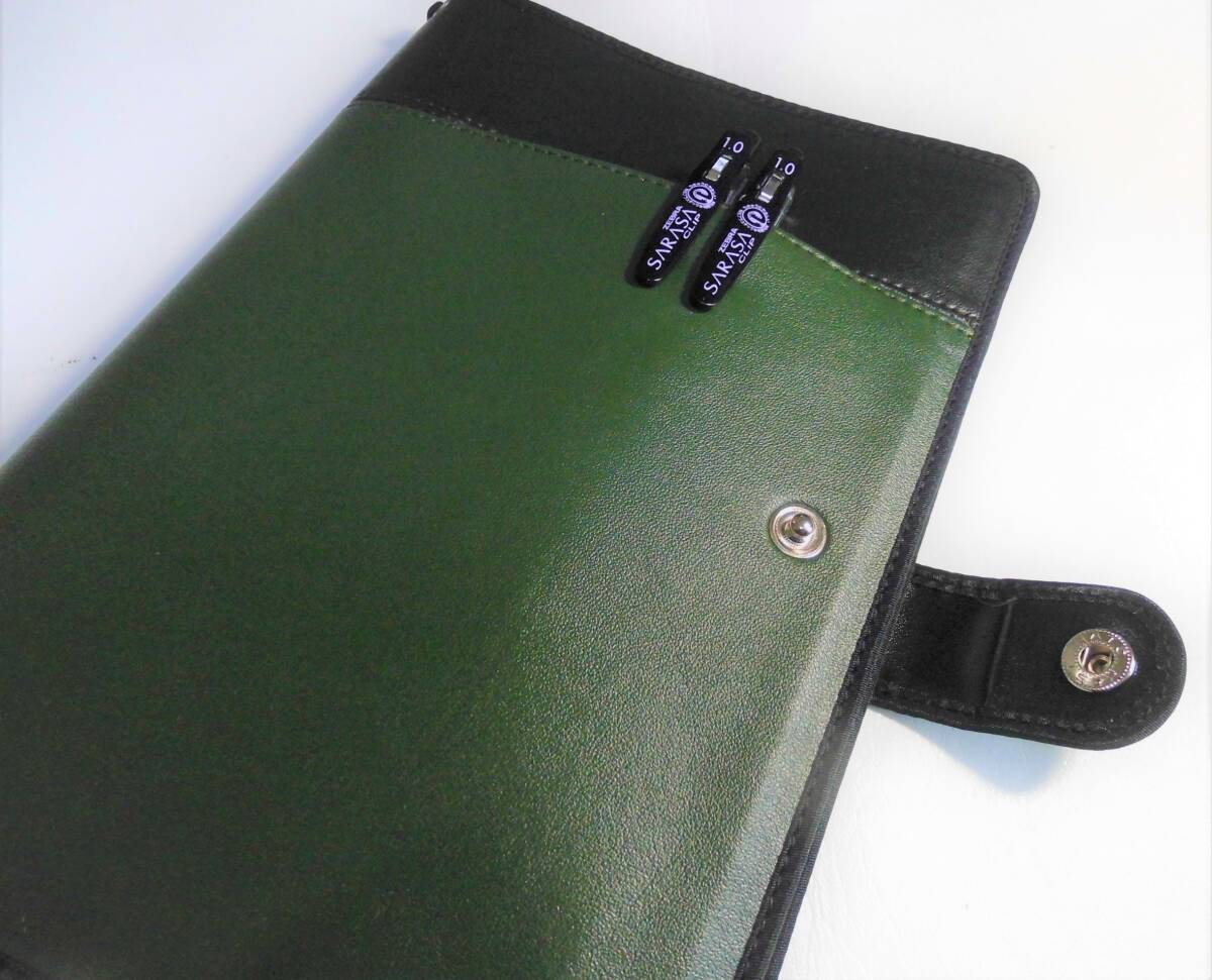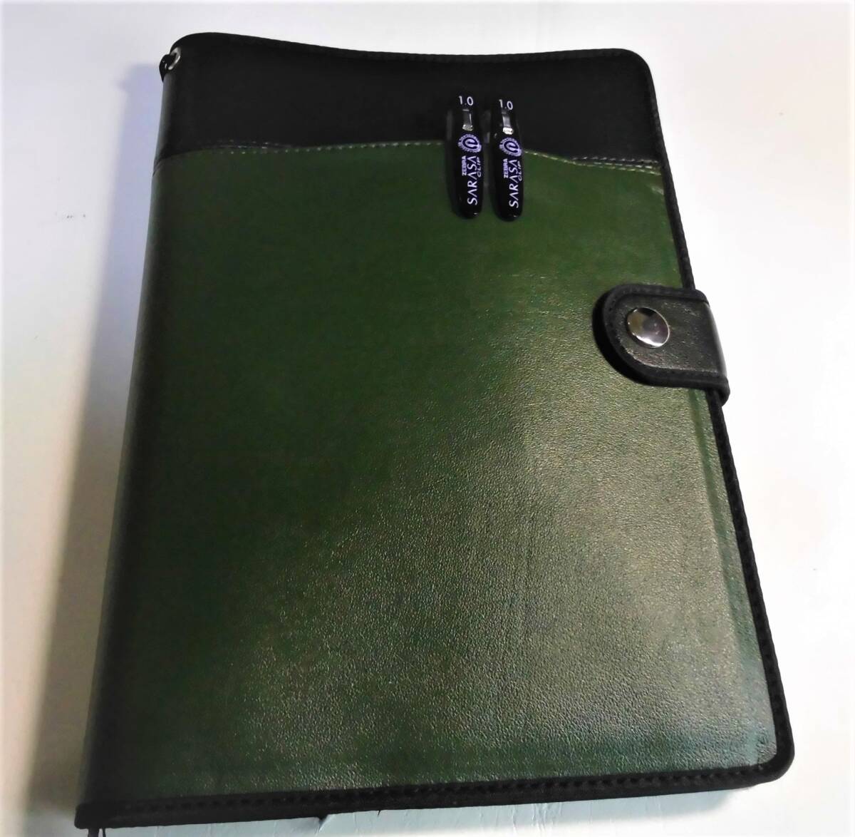 S5大学ノートサイズ【表紙ポケット付きカバー】合皮■グリーン/黒