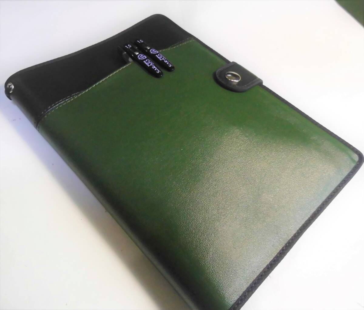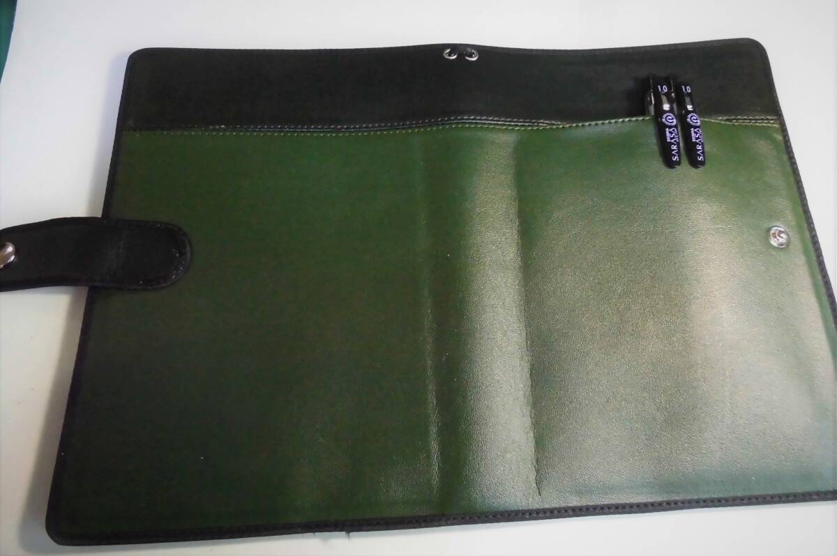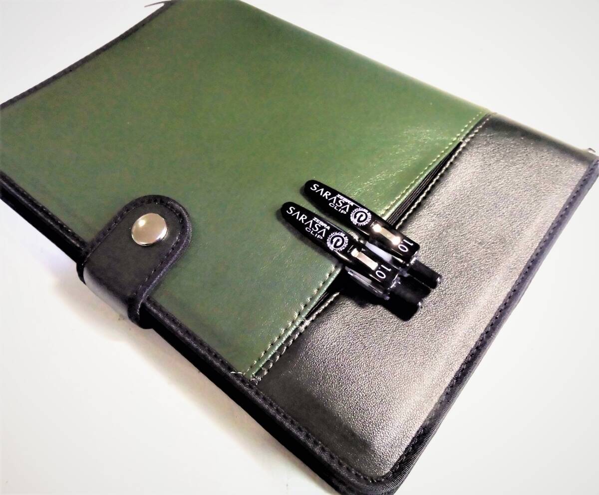 S5大学ノートサイズ【表紙ポケット付きカバー】合皮■グリーン/黒