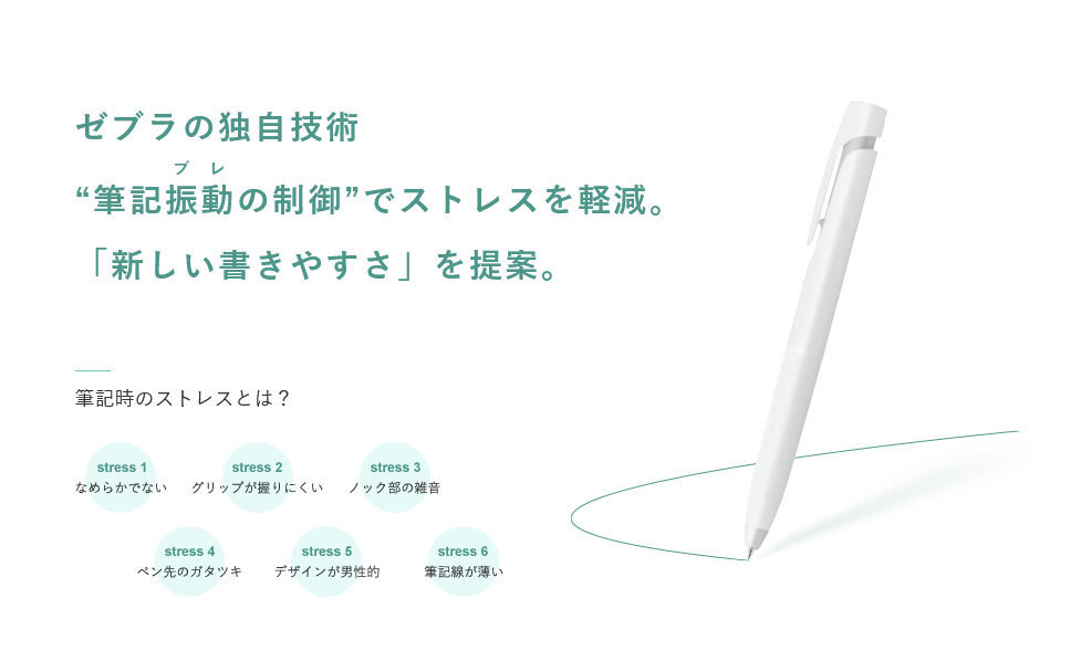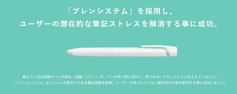 ゼブラの独自技術“筆記振動(ブレ)”を制御する「ブレンシステム」で筆記ストレスを軽減します。