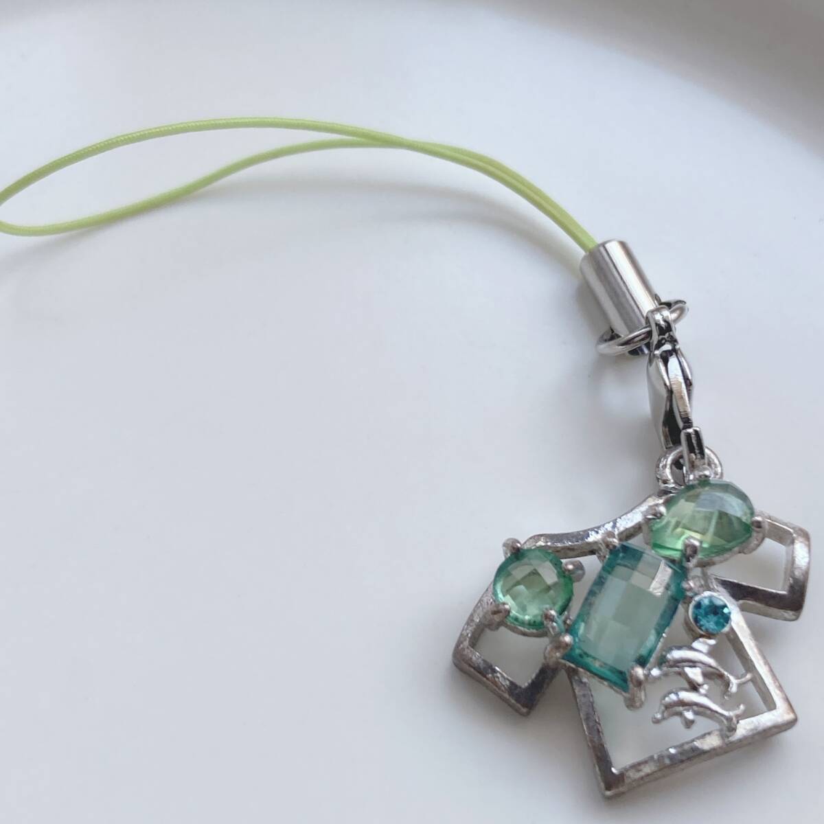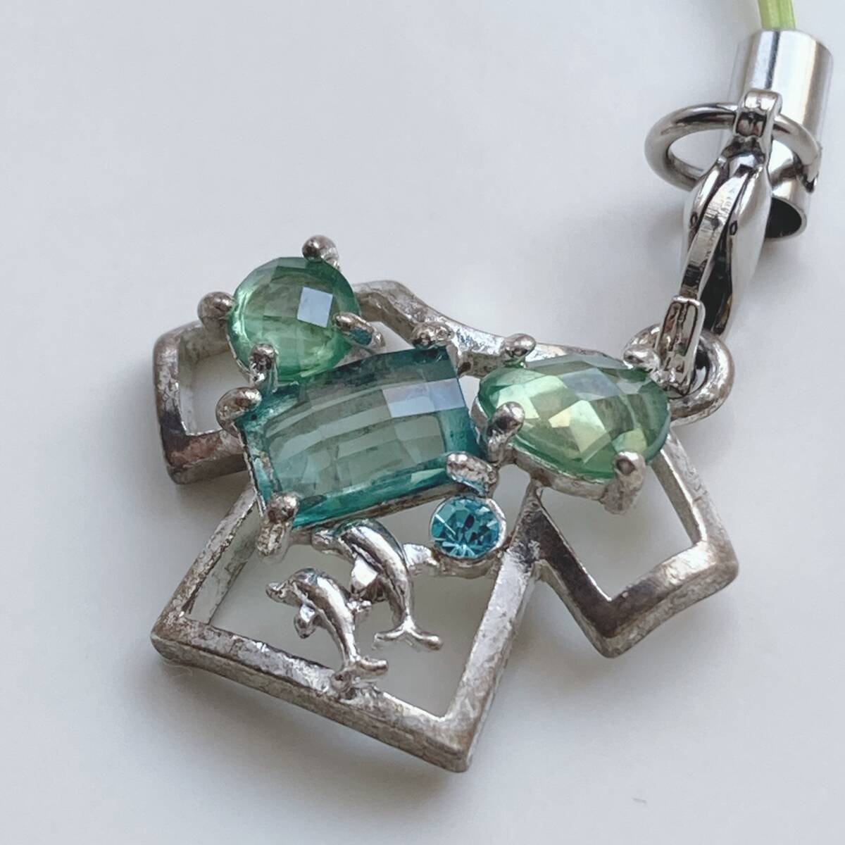 ストラップ キラキラ大粒 ビジュー ストーン グリーン シルバー アクアマリン☆japan Vintage k0563