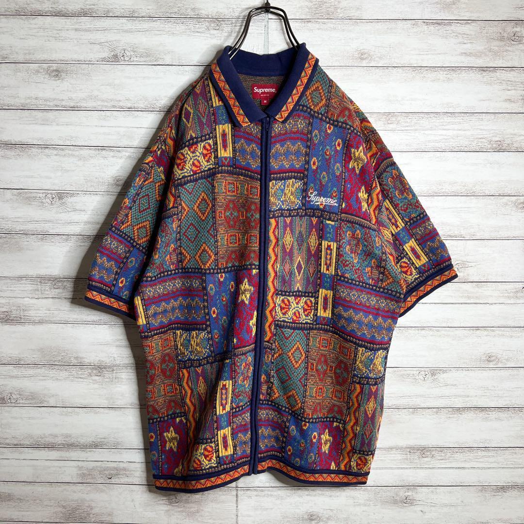 【入手困難!!】シュプリーム 刺繍 総柄 半袖シャツ ゆるだぼ 重ね着 希少 supreme パーカー スウェット ネイティブ柄