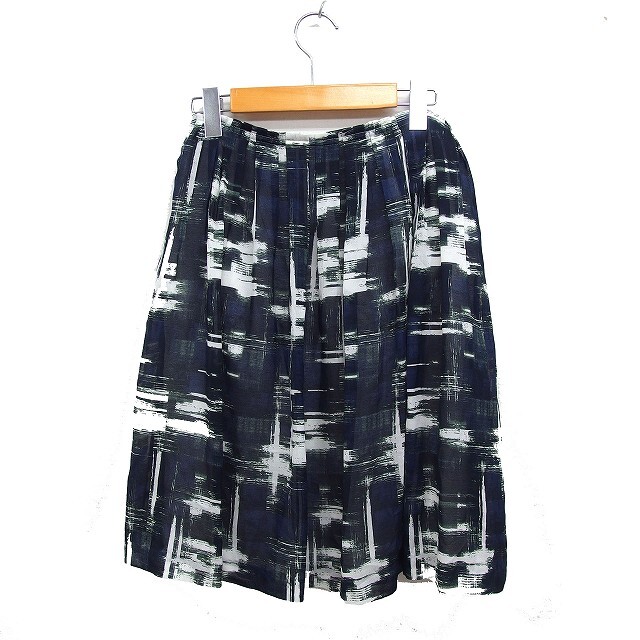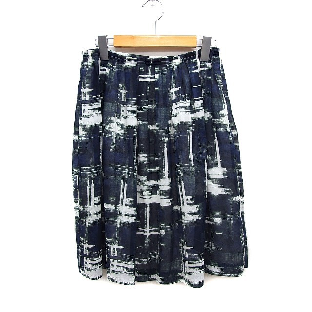 ユナイテッドアローズ UNITED ARROWS 柄 チェック スカート ひざ丈 40 ネイビー 紺 /FT23 レディース