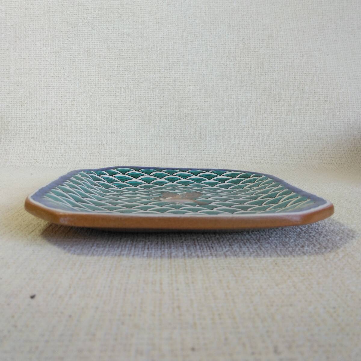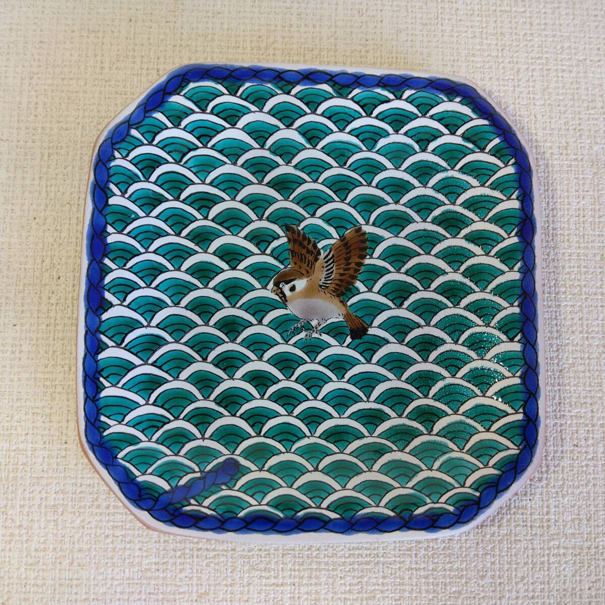 5,5号角皿緑釉青海波雀図Ⅱ九谷焼博峰窯