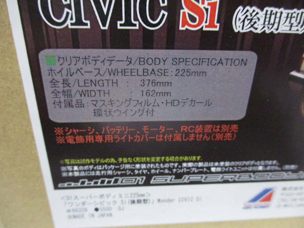 未使用未組立品 ABC HOBBY 01スーパーボディミニ #66328 ワンダーシビック Si 後期型 WB225mm、になります。