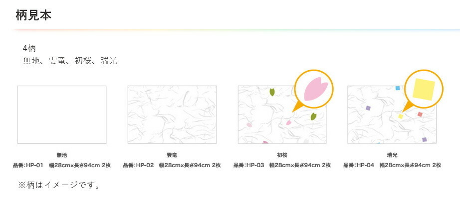 ●初桜、瑞光は、障子紙の抄紙時に手すき和紙を流し込み、あわせ漉きをした特殊な製法の障子紙です。各々で図柄の配置は異なります。