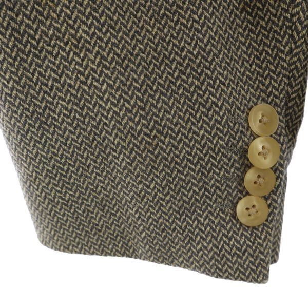 詳細 | AB7サイズだと思いますが、実寸を参考にお願いいたします。両袖口のボタンはデザインとなっており開閉はできません。内タグ表示が薄くなっております。右肘辺りにリペアあり。胸ポケットの上、他所々に汚れあり。右脇下に毛羽立ちあり。首周り内側や内ポケット口他所々に擦り切れがあります。古着にご理解の上ご購入をお願い致します。 |
