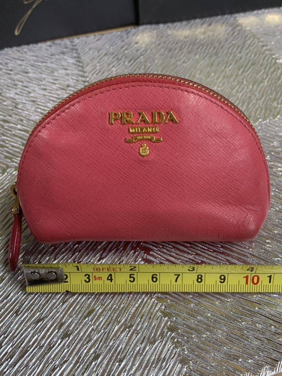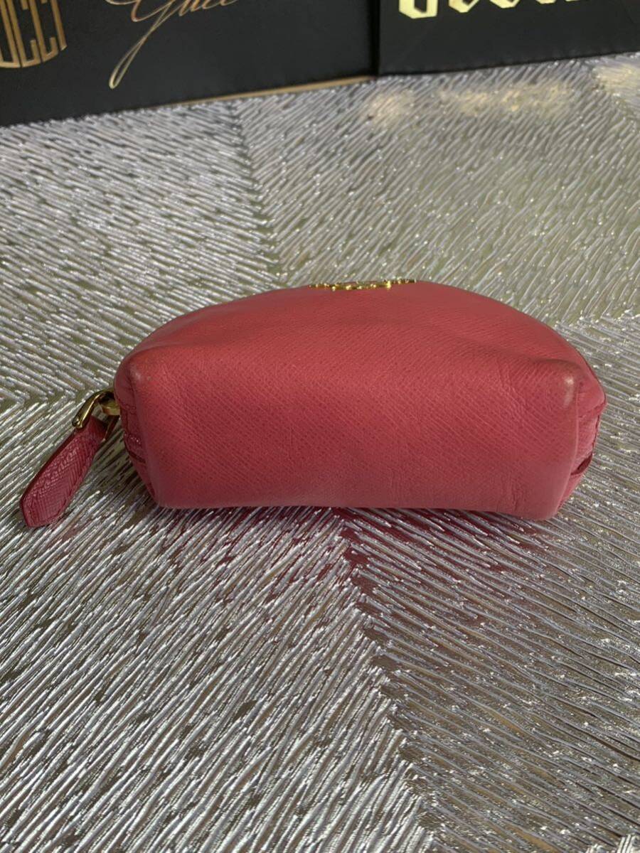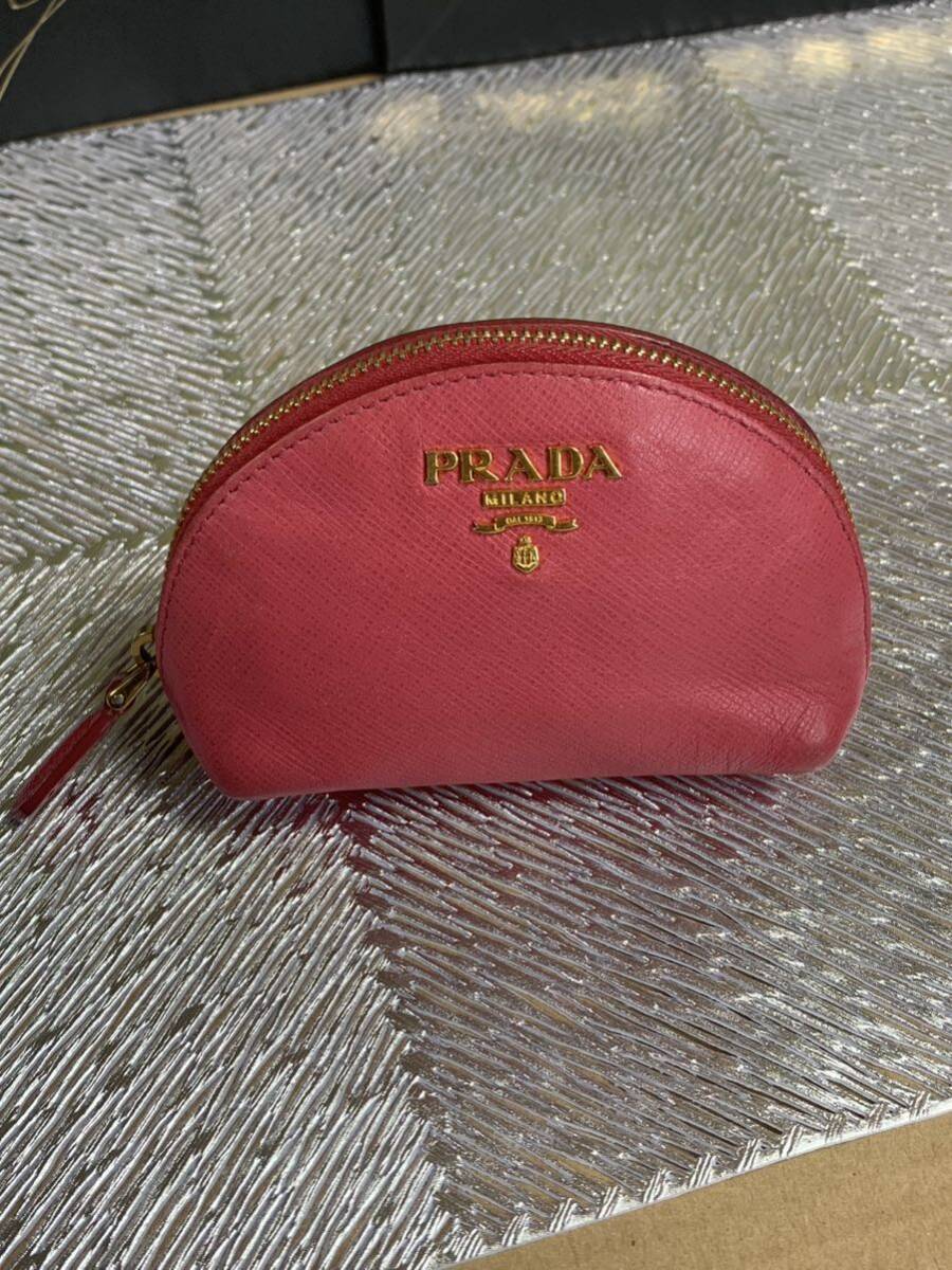 中古PRADAポーチの出品です。全体的ピンクレザー素材。内側の金具は取り外し可能。サイズは写真でご確認できます。イタリア製。