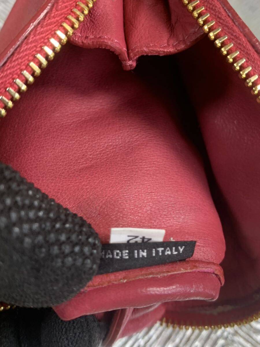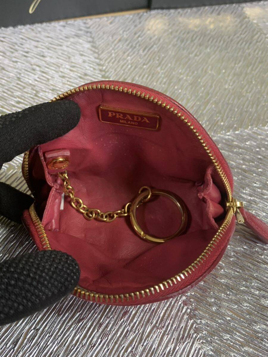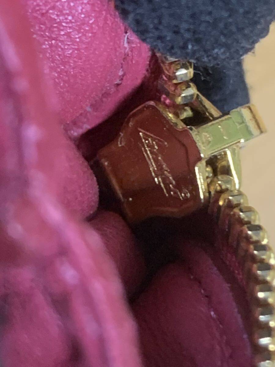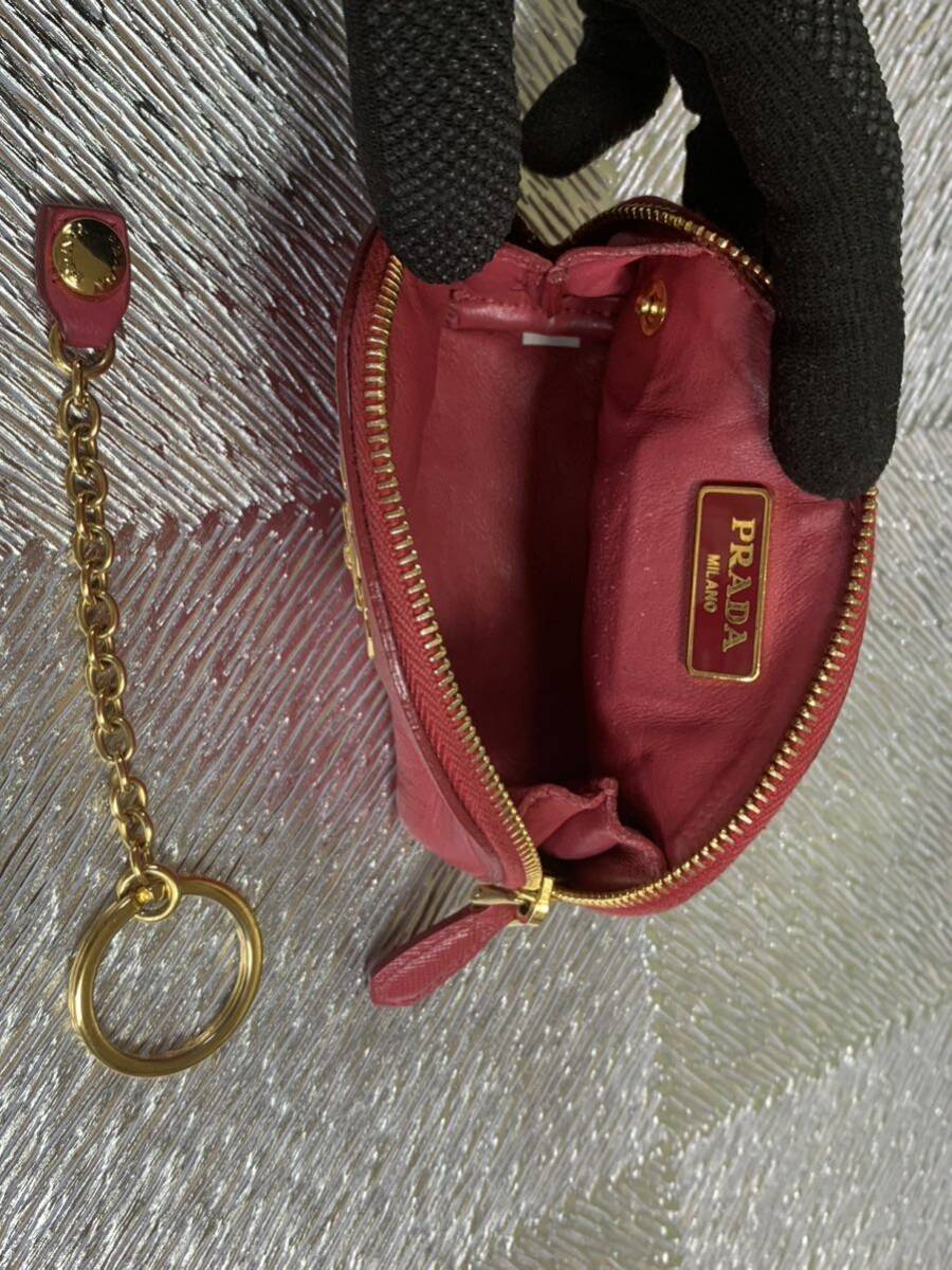 中古PRADAポーチの出品です。全体的ピンクレザー素材。内側の金具は取り外し可能。サイズは写真でご確認できます。イタリア製。