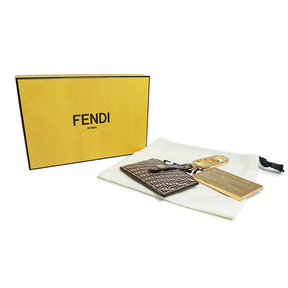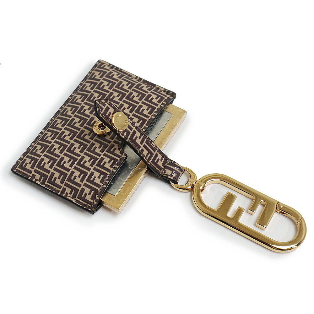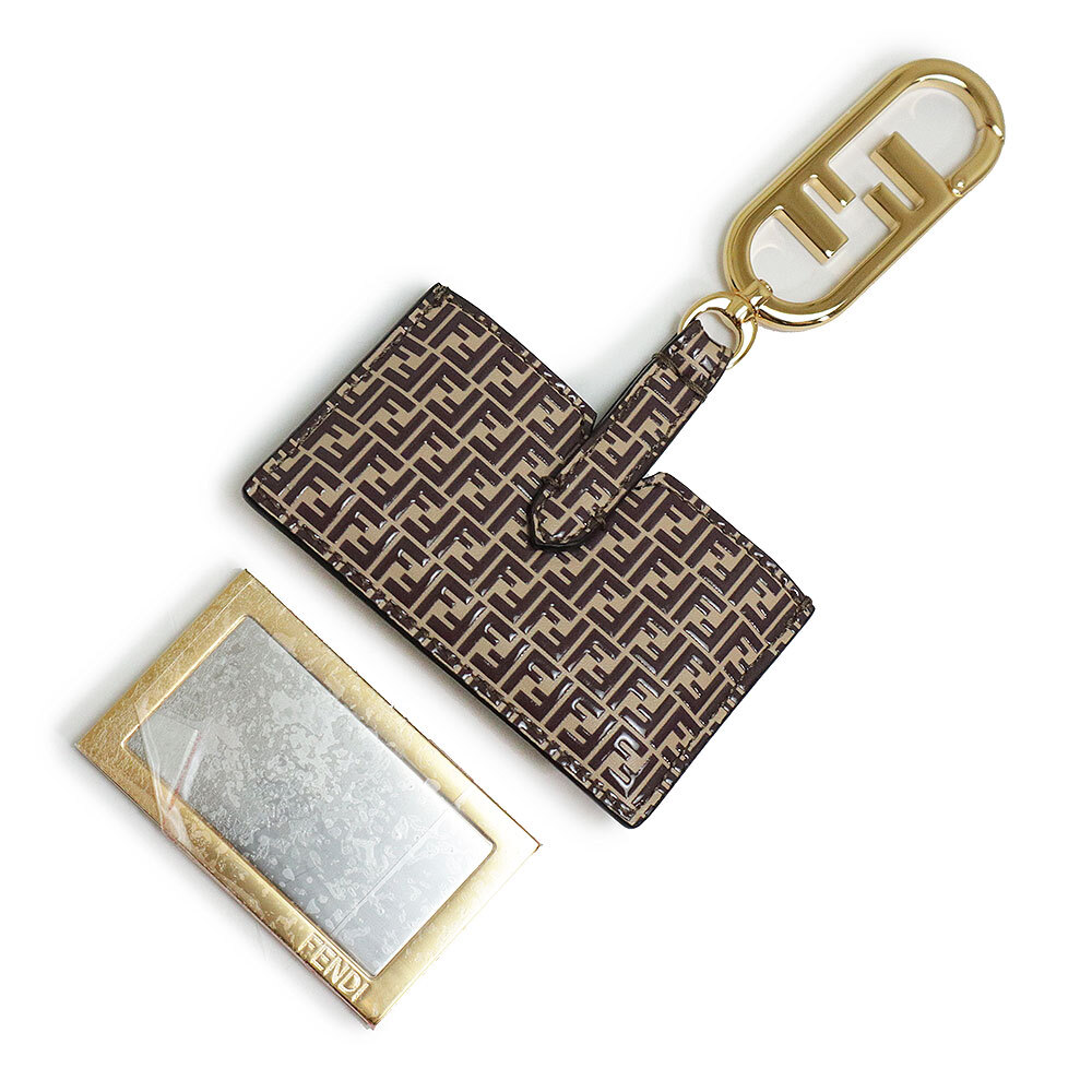 (新品・未使用品)フェンディ FENDI ズッカ柄 ミラ―ホルダー チャーム レザー ブラウン 茶 ゴールド金具 7AS049 箱付