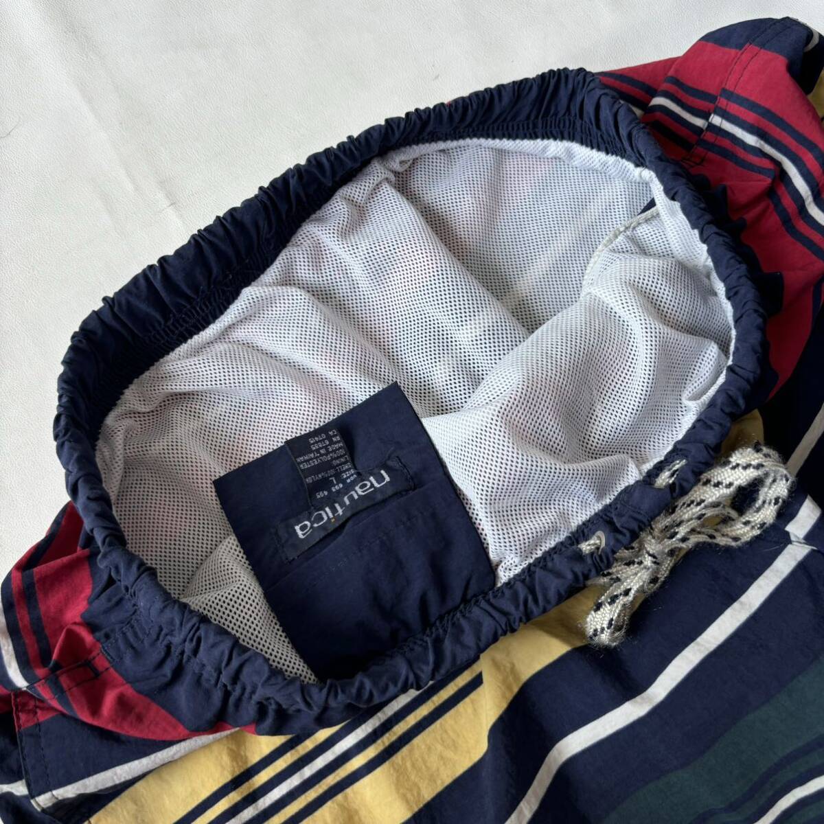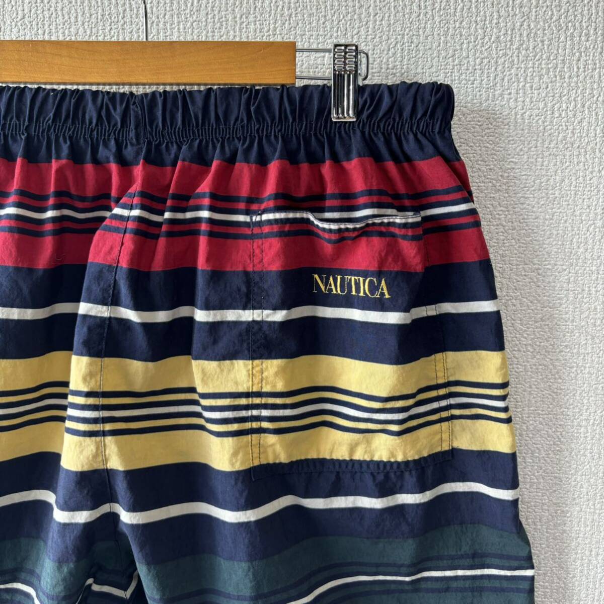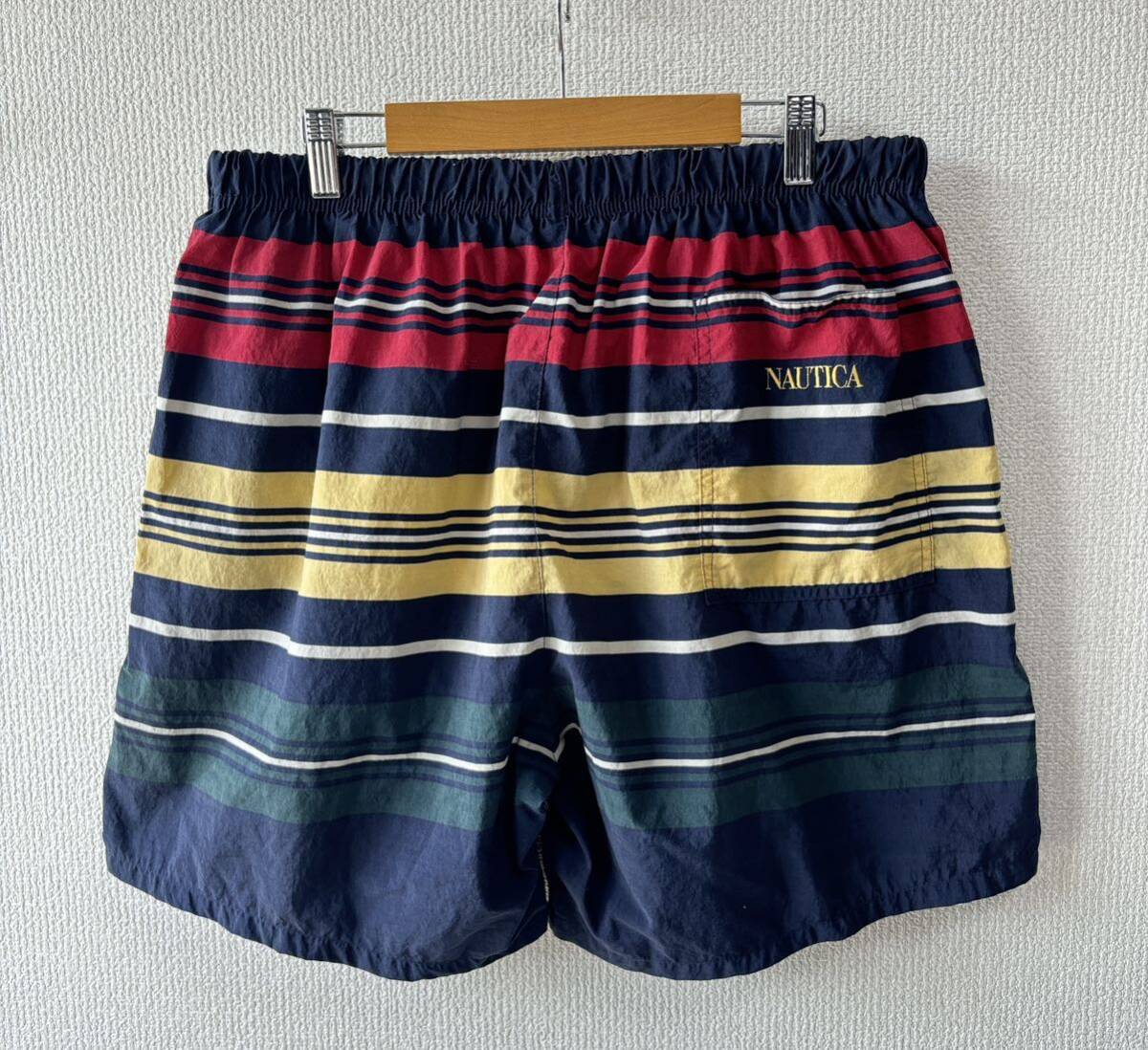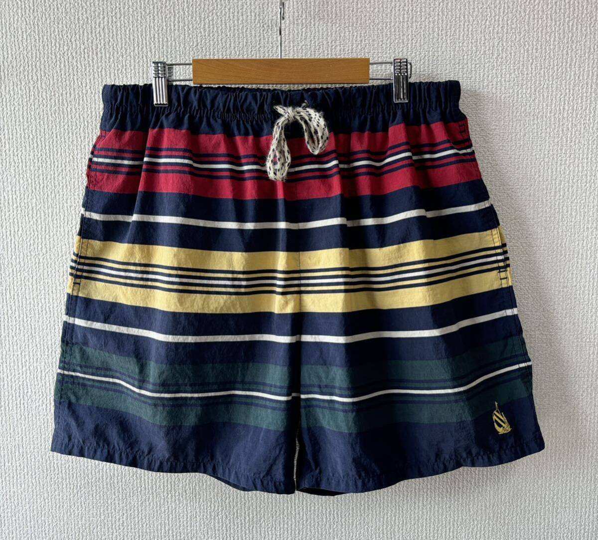 90s NAUTICA ボーダー ナイロン スイム ショーツ L ノーティカ ショート パンツ