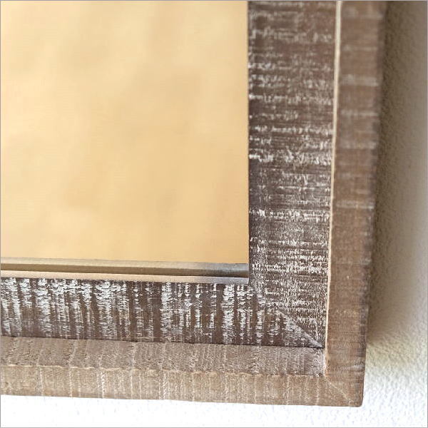 | 経年変化したパインの 古木材をフレームに シャビーペイントや釘痕等を付けて ヴィンテージな風合いたっぷりに仕上げた ウォールミラー リビングや玄関はもちろん 家族みんなで使う洗面スペースや サロンやショップの化粧室などにもオススメ 44.5×52.5cmのLサイズです 商品名 : ヴィンテージウォールミラー L 商品番号 : plk1402 全体サイズ(cm) : 幅44.5×奥行3.5×高さ52.5 ミラーのサイズ : 幅35.5×高さ44 材質 : 古木(パイン材) 3mm厚ミラー 他 重量 : 2.3kg 生産国 : 日本 ※縦横両用 ※取り付け用紐付き ※古木をそのまま使用しており、小傷や隙、わずかな欠け、穴の跡がある場合がございます ※ミラーの小さな擦り傷はご容赦ください ※ディスプレイによる色の違いはご了承下さい |
