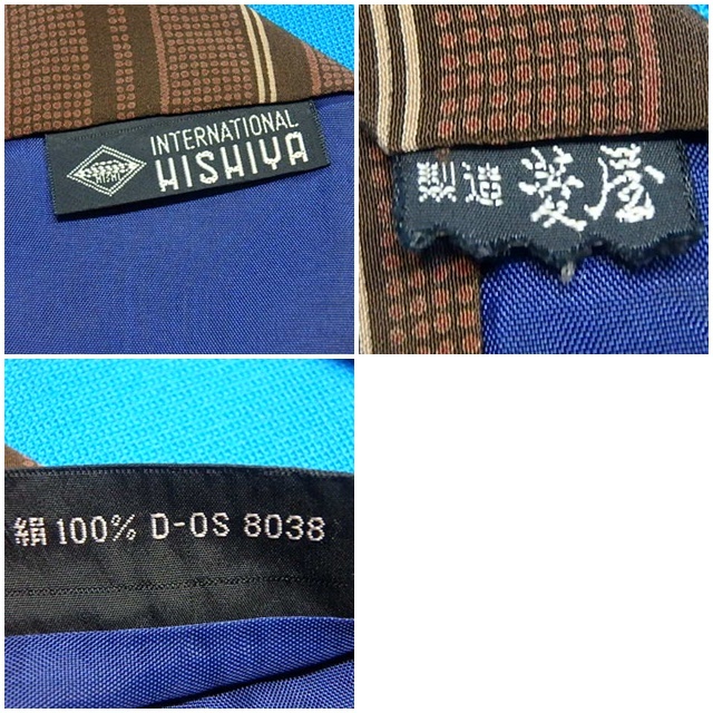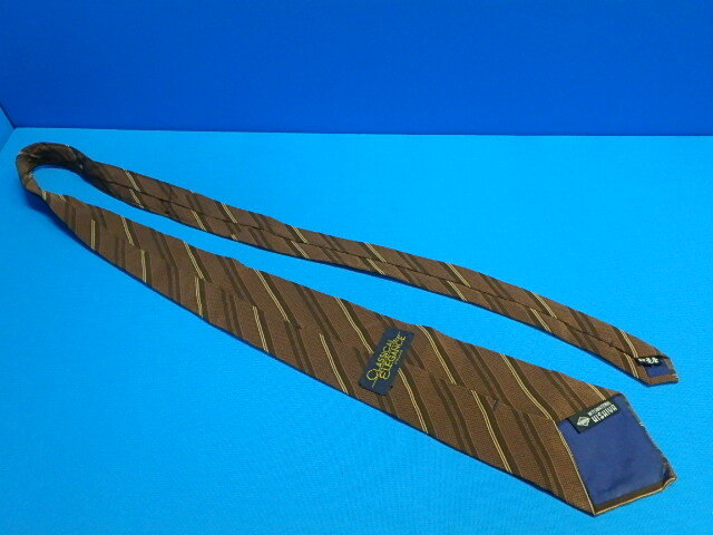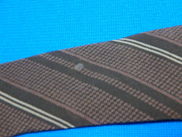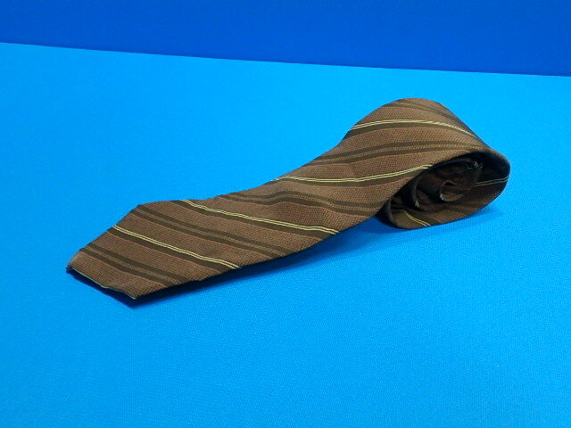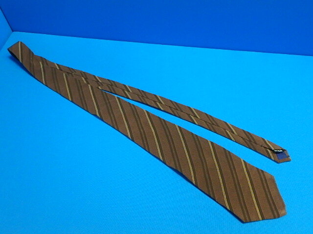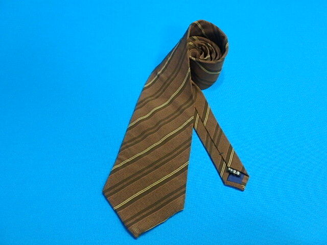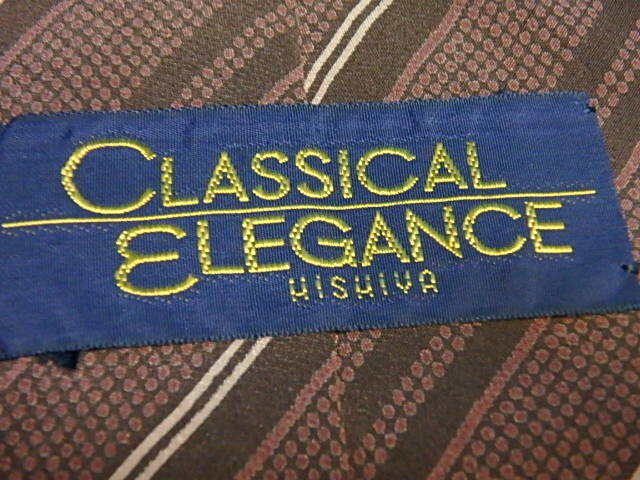 n407k ネクタイ classical elegance 菱屋 HISHIYA 絹100% 茶系 ストライプ レトロ 中古 (0613-1)