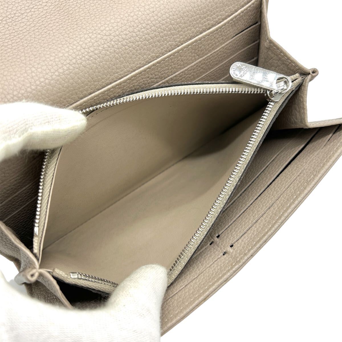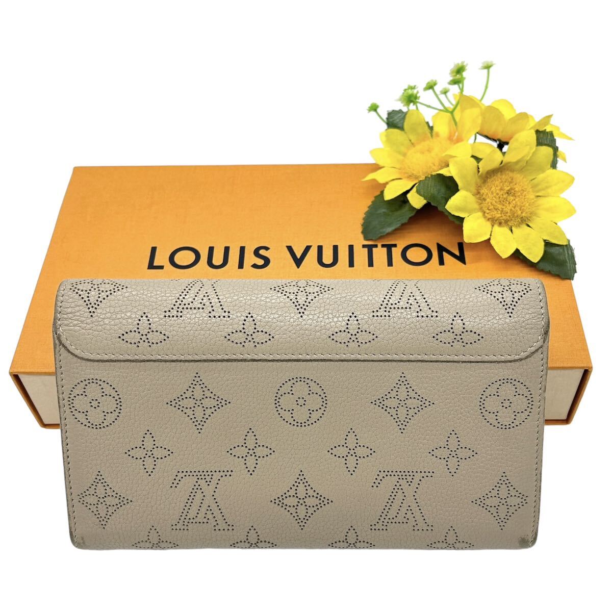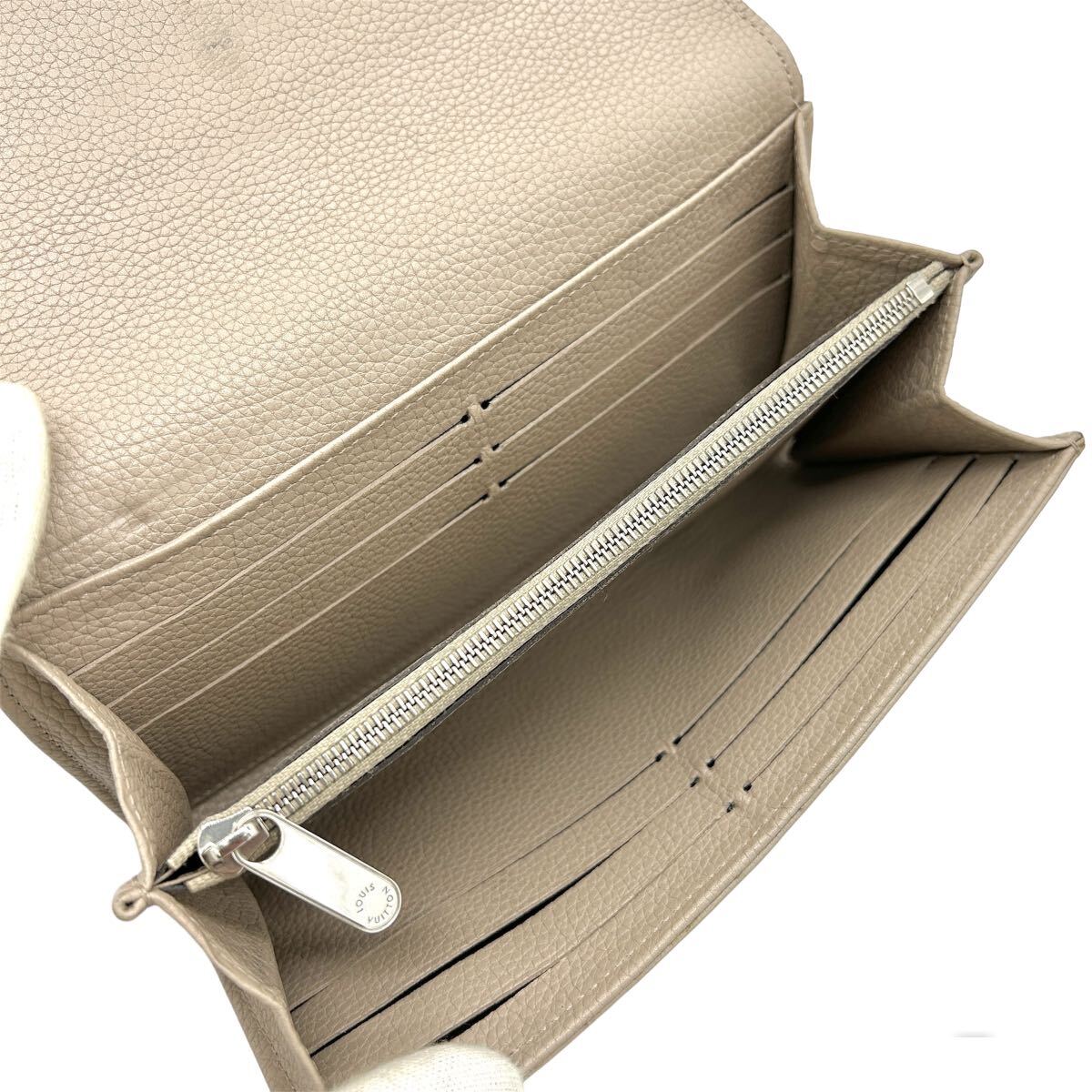 長財布外側は角スレ及びボタン金具に小キズがあります。内側は小銭入れとヴィトンロゴ周辺に若干のよごれがありますが、気にならない程度で全体的に良好な状態です。写真にてご確認下さい。純正ケースを付属します。
