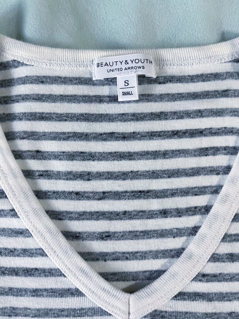 Beauty & Youth (UNITED ARROWS) の半袖Tシャツです。Sサイズ。グレー×ホワイトのボーダー。中古品。ノークレームノーリターンでお願いします。あくまで個人保管品になりますので、品質に過度に神経質な方は入札をご遠慮いただければと思います。24時間以内のご連絡よろしくお願いします。お取引終了後、評価が必要な方はこちらに入れていただければ、こちらからも入れさせていただきます。評価不要の方はこちらにも評価は無しで、取引ナビにてご連絡お願いします。(評価は遅くなる場合はありますが必ず入れさせていだきます。ご了承ください。)