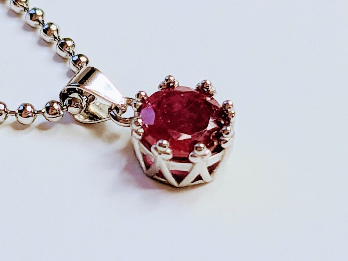 使用石 : 天然ルビー(光沢のための充填処理) 約6mm ※平均値1.3cts前後 ペンダントサイズ : 約17×7.5mm (シルバー925製:ロジウムメッキ加工) サービスチェーン 長さ : 約40cm 留め金 : 引き輪式 (真鍮製:メッキ加工) 天然石由来のインクルージョン、傷等が確認できます。 天然石ですので、色合いが個々に違いはあります。 【備考】 誠に勝手ながら、土、日曜日、祝日、長期休暇は、 発送業務をお休みさせていただいておりますので、ご了承下さい。 画像はサンプル画像ですが、サンプル画像と同品質の商品をお送りします。 来るだけ実物に近い画像を使っておりますが、実物と多少色が異なる場合がありますので、ご了承下さい。 環境に配慮して、必要以上の梱包をしておりませんのでご理解下さい。 基本的にはチャック袋等に商品を入れ、緩衝材で壊れないように保護してお送り致します。 プレゼント梱包はご対応しておりませんので、ご了承下さい。 スムーズなお取り引きを心掛けておりますが、仕事の都合上、ご返信、発送等に 多少お時間を頂く場合もあるかと思いますが、ご理解の程、よろしくお願いします。 ノークレーム、ノーリターンでお願い致します。 | |||
