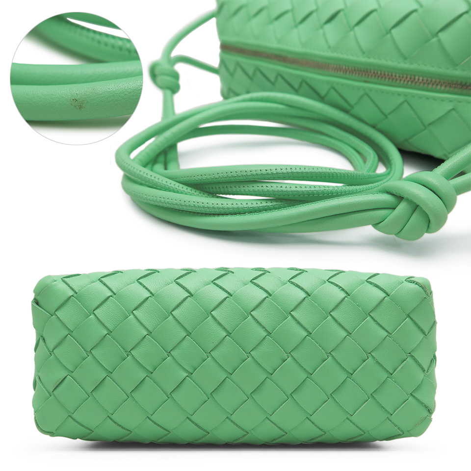 | 備 考 | Wファスナー開閉 代表的なデザインであるイントレチャートレザーのショルダーバックが入荷しました。 上質なレザーと目を惹くカラー&デザインが、持つ人すべてを更に魅力的に映します。 ファスナー周りに接着剤の経年変色が見受けられます。 上下ともに同等の角スレ、よごれがございます。 ストラップに小さなよごれがあり、レザーの編み目がわずかに捲れている部分がございますが、ほかに目立つ大きなダメージはなくきれいな印象のアイテムです。 ※保存用布袋には軽いよごれがございます。 当サイトに掲載している商品は、店頭でも展示・販売している場合がございます。 そのため撮影時にはなかったダメージや劣化が生じることがございます。 詳細、ご不明な点は事前にお問い合わせください。 [L]0705 |