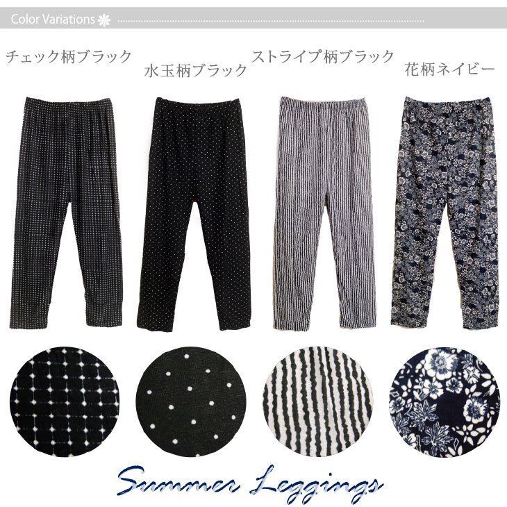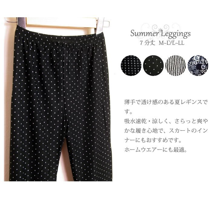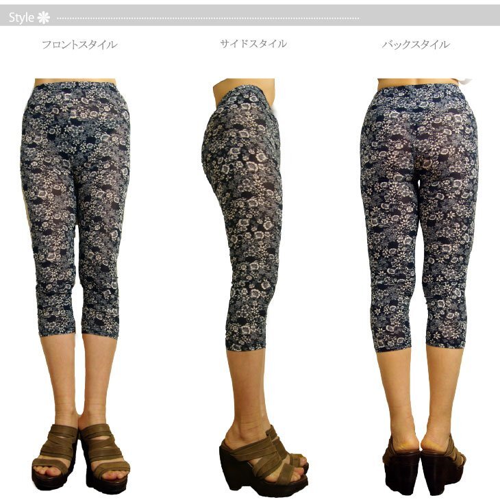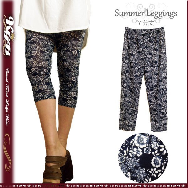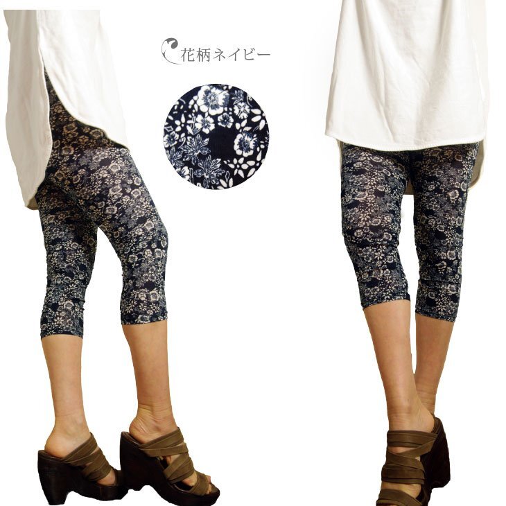 M-L レギンス 吸水速乾 レディース 夏 涼しい 七分丈 柄 リラックス 新品 花柄ネイビー メール便送料無料