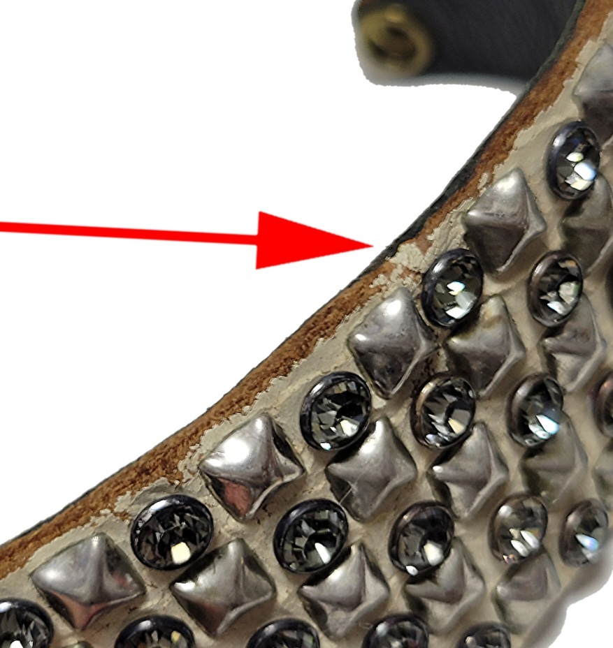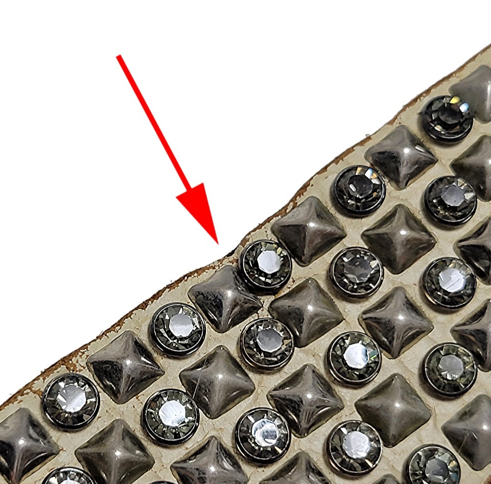 ボタンの傷やスタッズの傷、塗装の剥げのような箇所にもつきましては、大体が元々の加工によるものです。