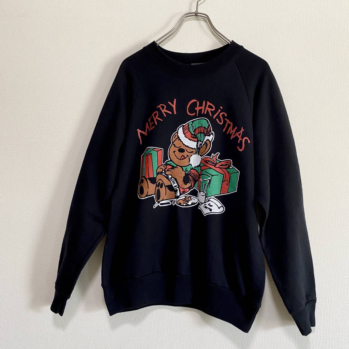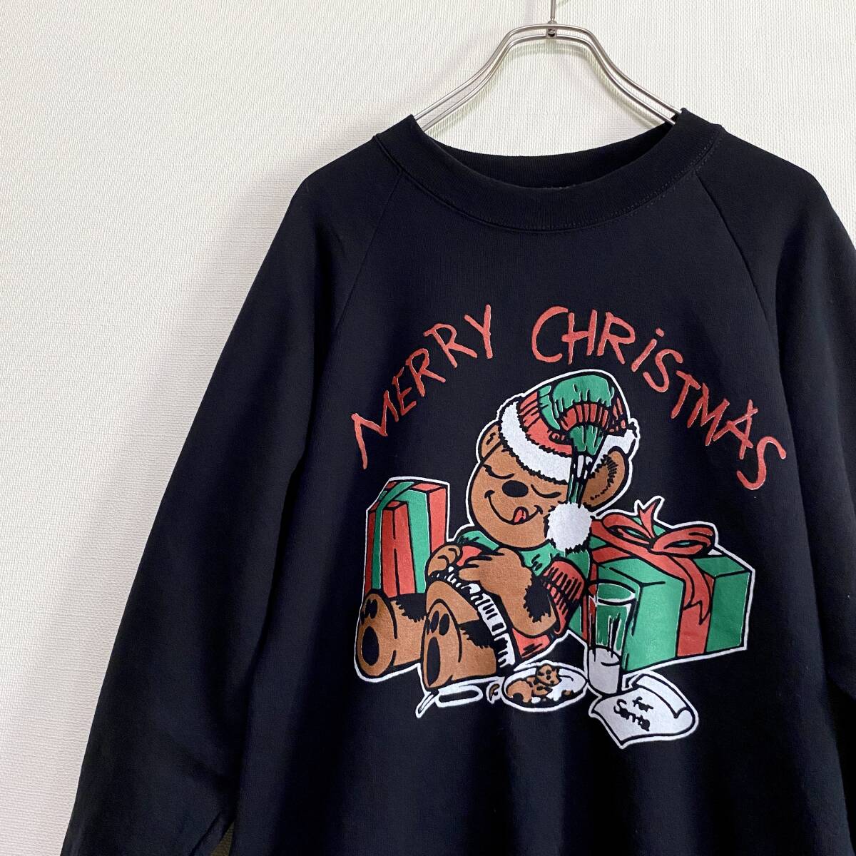 アメリカ古着 90s ヴィンテージ トレーナー スウェット Mサイズ USA製 熊 アニマル クリスマス 【Q263】