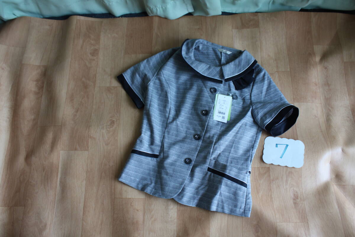 OL制服・事務服Lemidiグレーラメ入り横ストライプオーバーブラウス  7号 です。