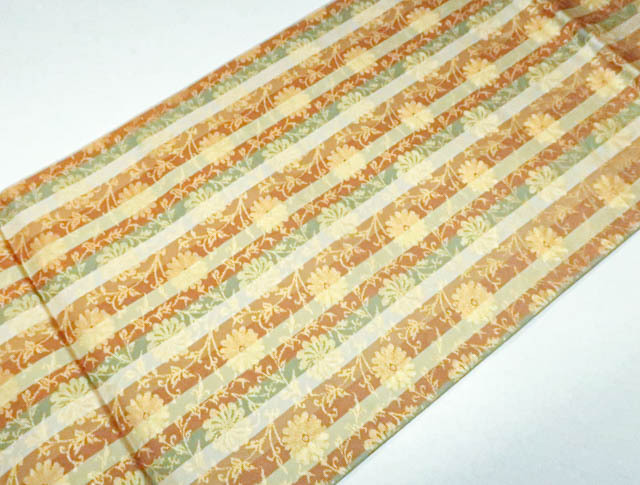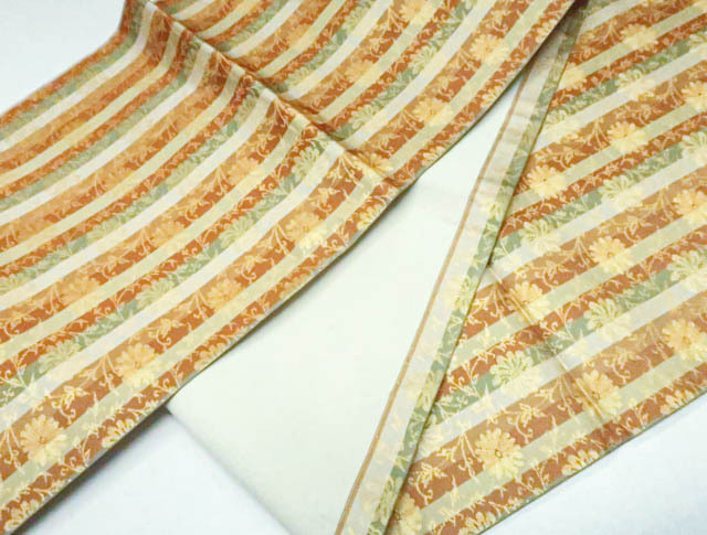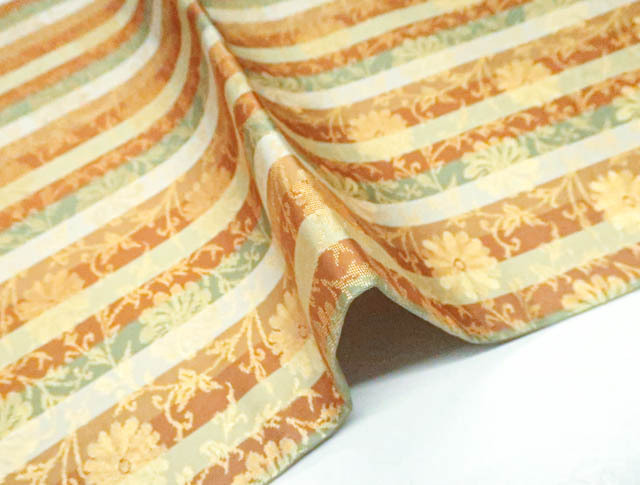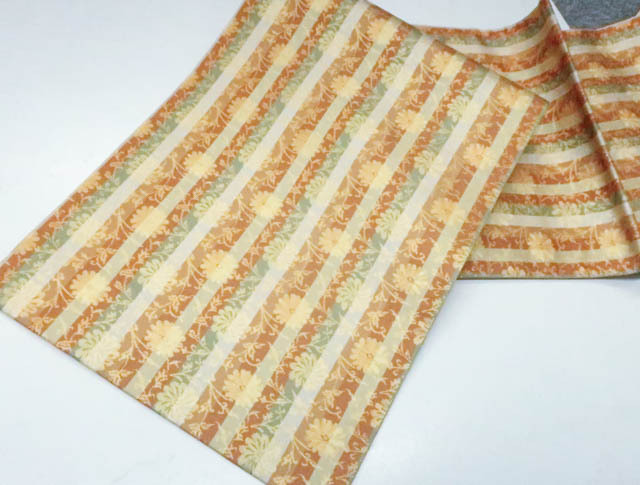 | リサイクル商品ではございますが、大変良い状態のお品です。 地色は橙系です。 1枚目の画像が近いお色かと思われます。 素材は正絹です。 |