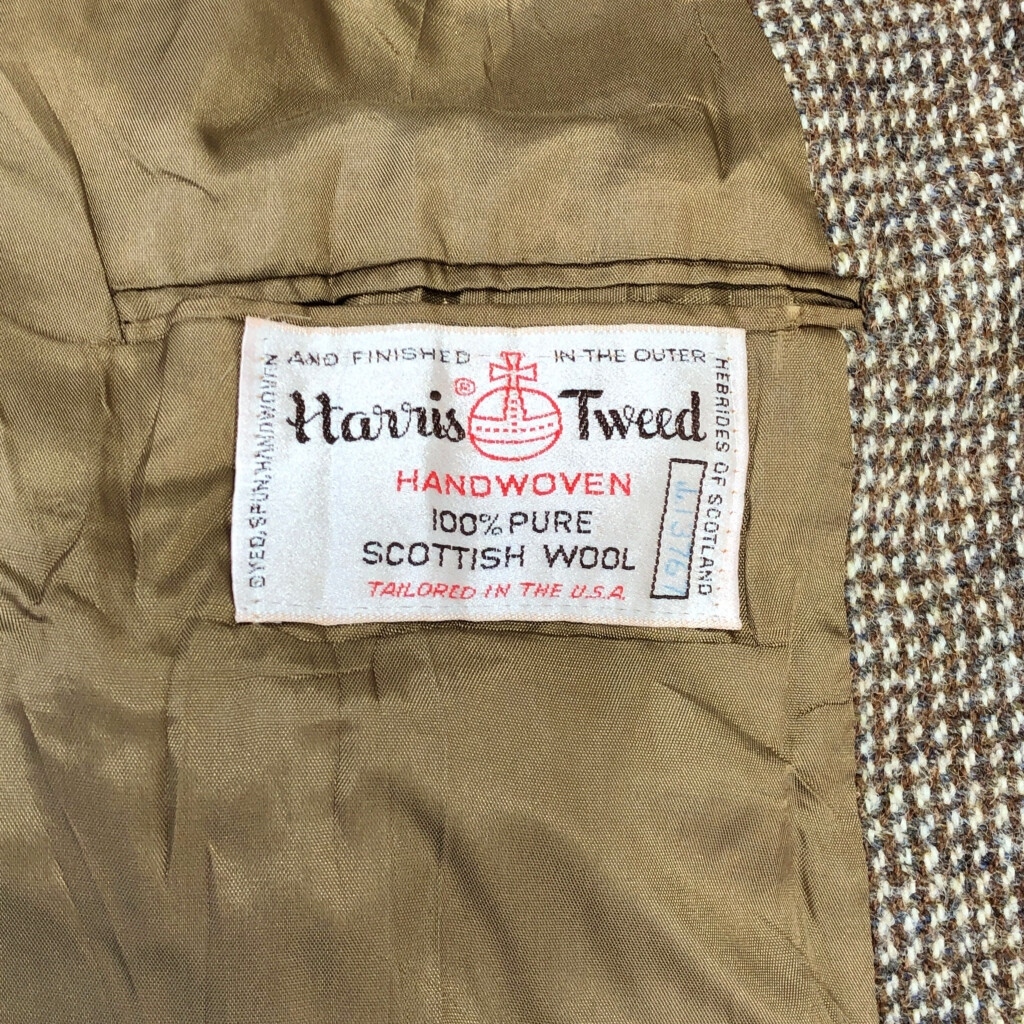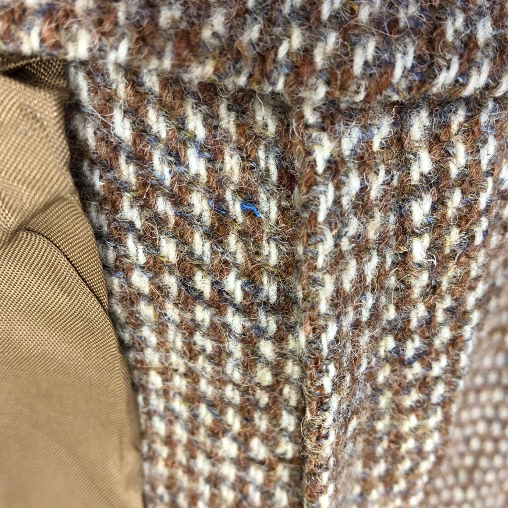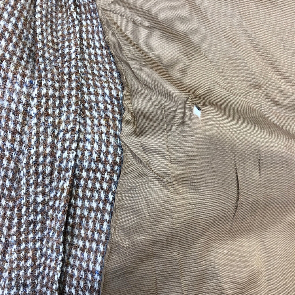 | [商品管理番号] R6708 [ブランド] Harris Tweed/ハリスツイード [サイズ] M相当 [実寸サイズ] 肩幅:約47cm 着丈:約76cm 身幅:約57cm 袖丈:約62cm [主な素材] 表地 : ウール 裏地 : 13848 [色] ブラウン [仕様] 生産国 : USA製 90年代 [状態] 汚れ:背中、ポケット内 破れ:腹部裏地、背中裏地 | |||