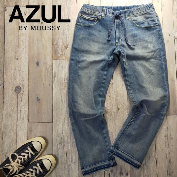 ★AZUL by moussy アズール★USED加工 デニム スウェット パンツ S S296