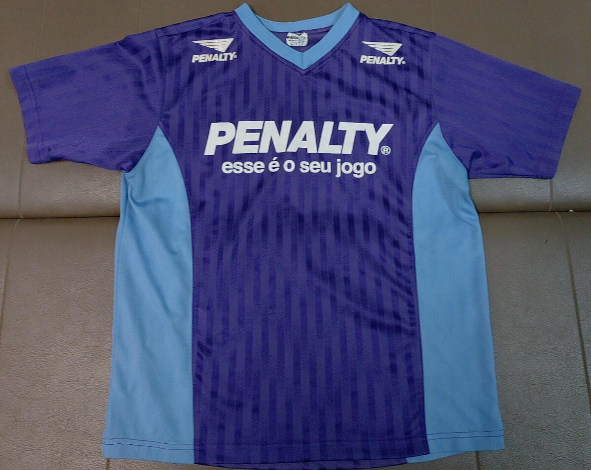PENALTY製プラクティスシャツ 旧ロゴ 半袖 紫カラー×水色 サイズS 身幅50センチ×着丈65センチ 欲しい方に USED