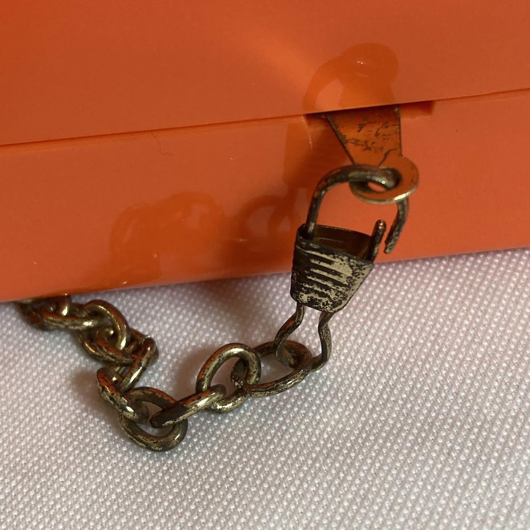 開閉金具のネジが1つ欠品してます。チェーンストラップの根本部分に金具のくすみがあります。ご了承お願いします。
