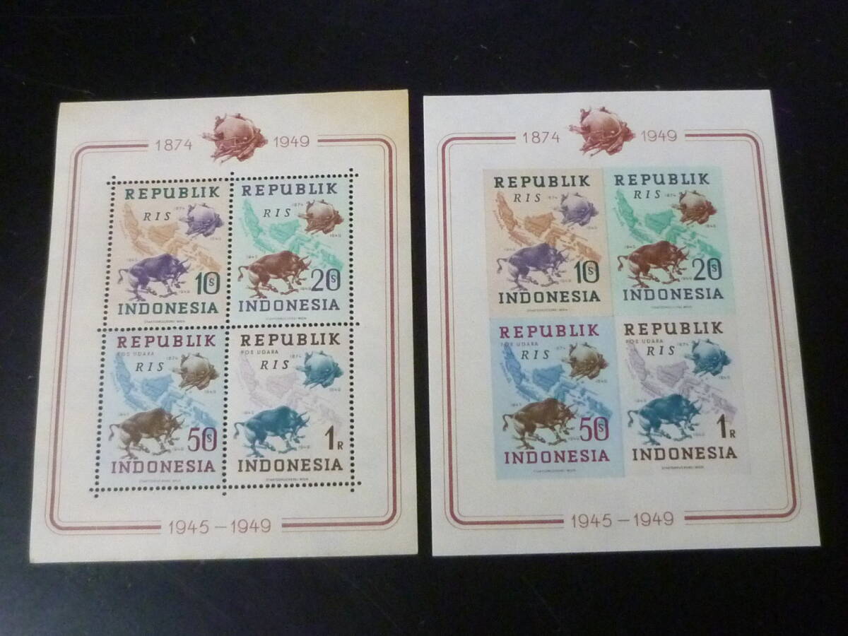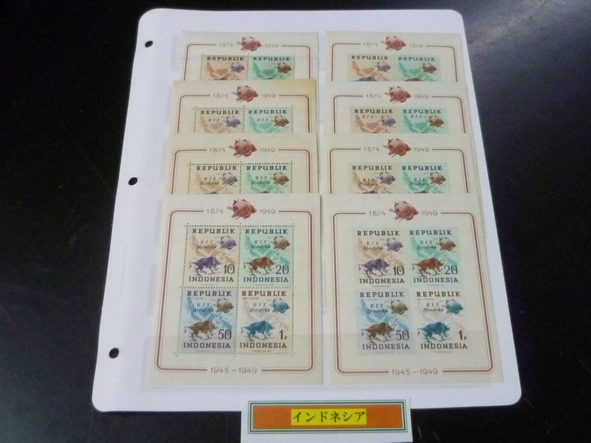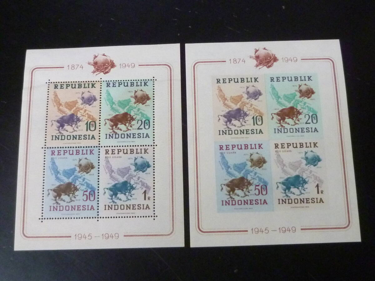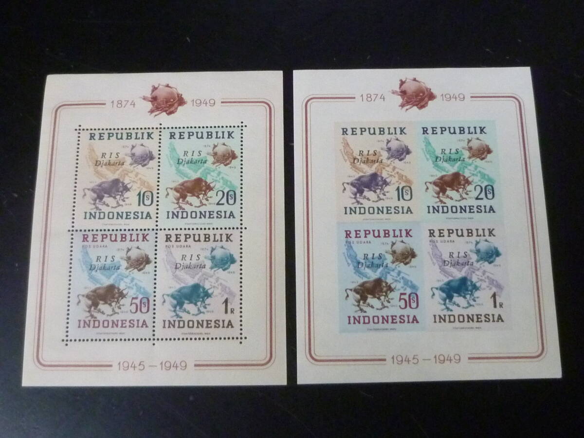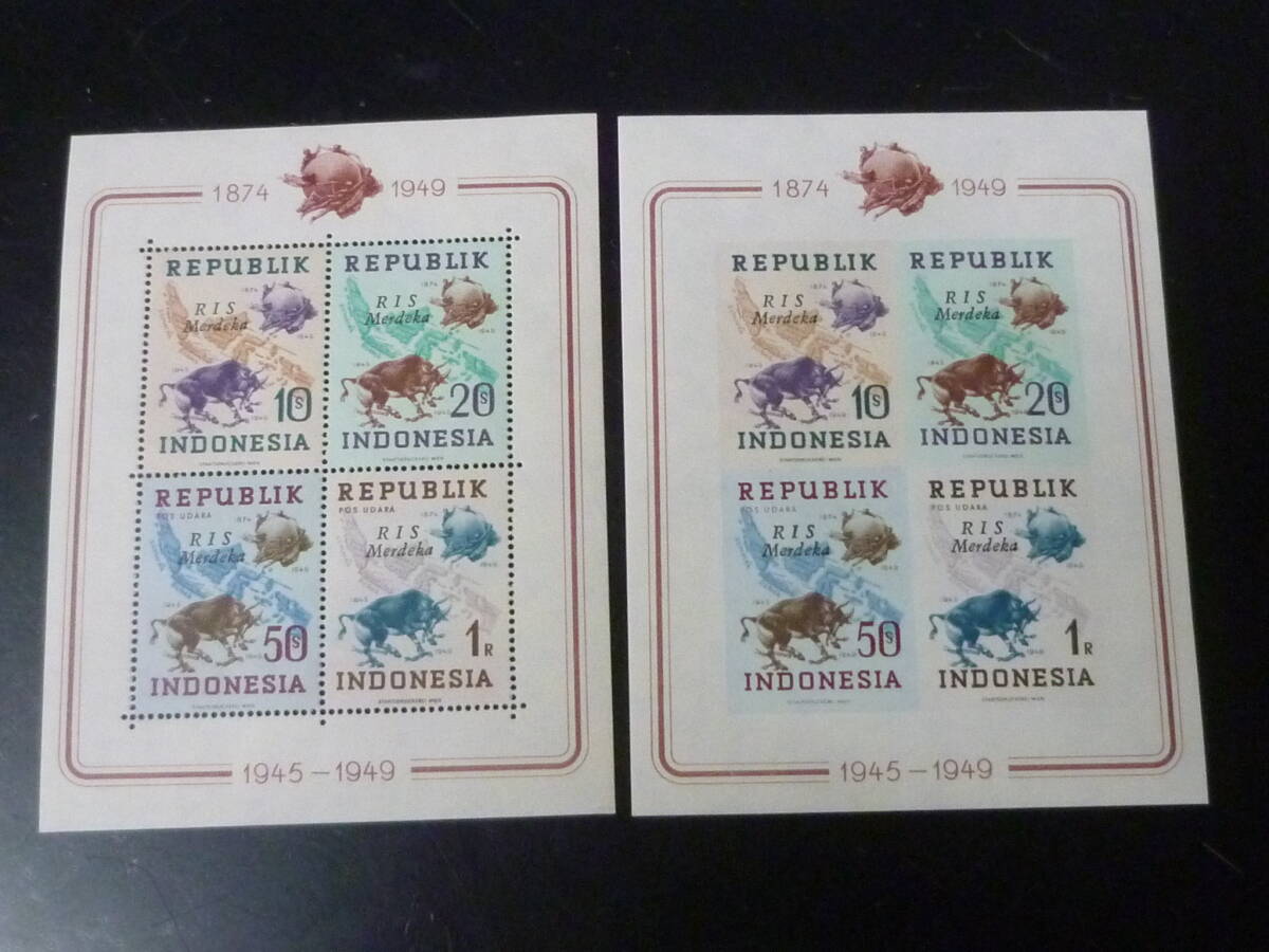 24L A №21 インドネシア切手 1949年 SC#62-65  各種加刷 4種 小型シート 有・無目打 計8種 未使用NH~OH・VF