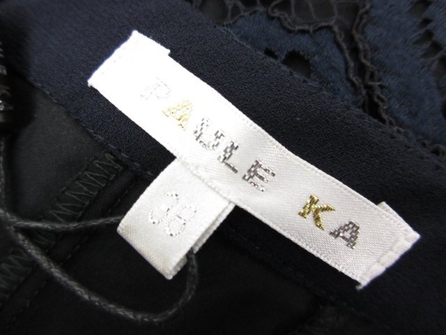 未使用【PAULE KA ポールカ】 総レース柄 プリーツフレアミニスカート (レディース) size38 ネイビー 春夏におすすめ♪ □33LF3675□