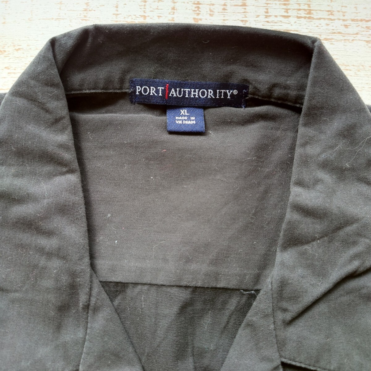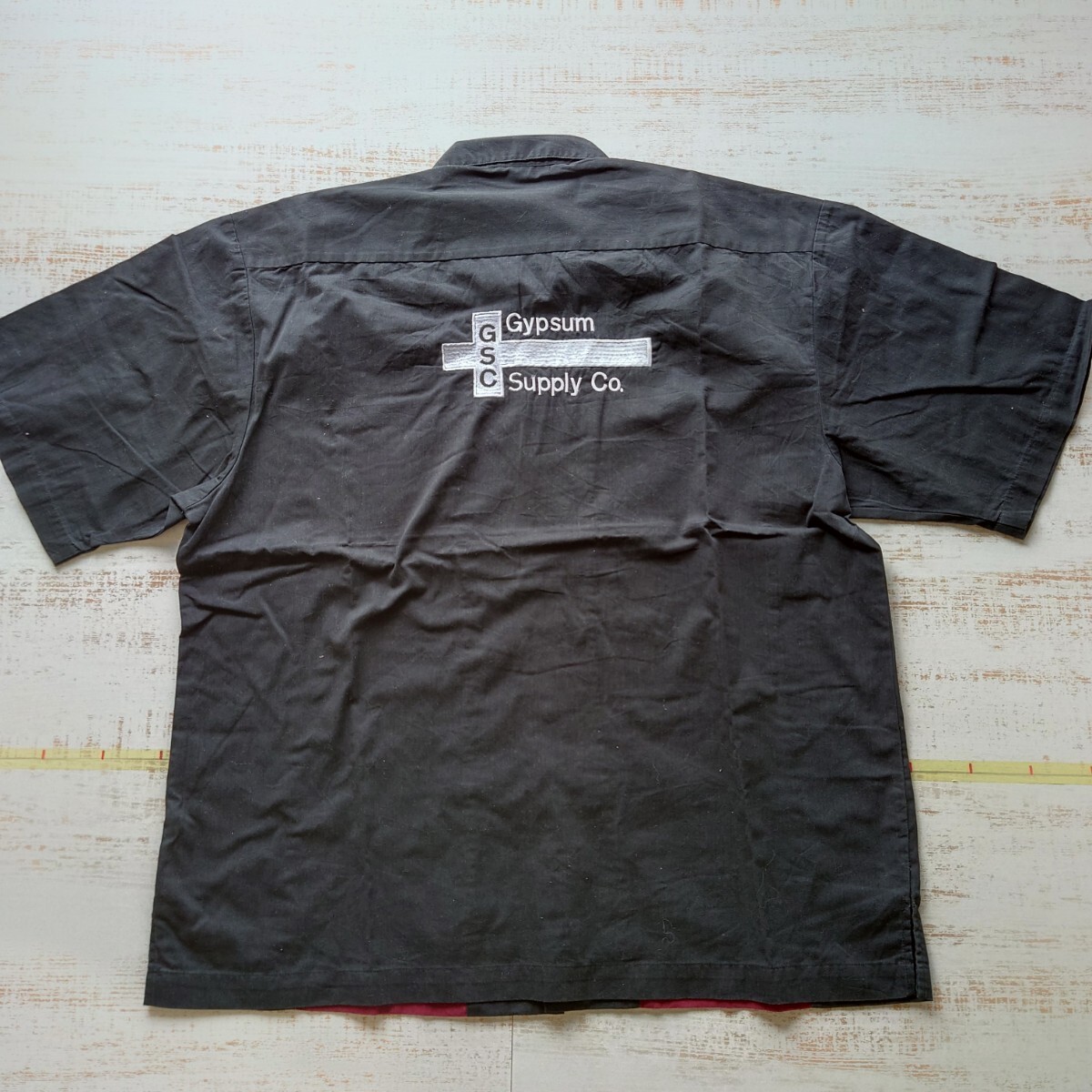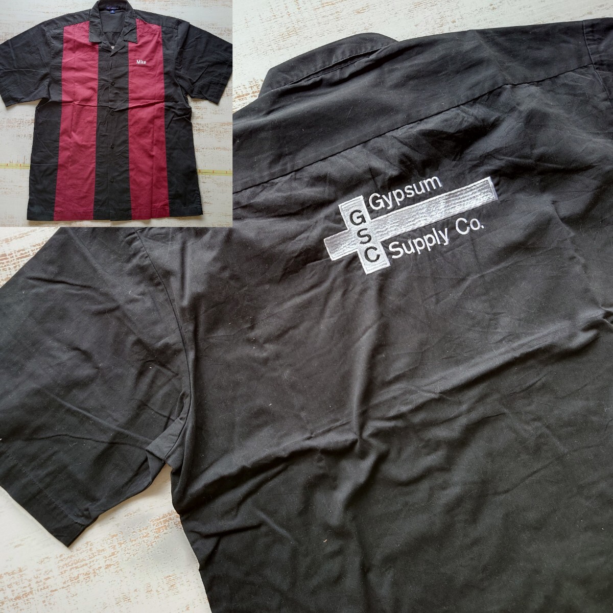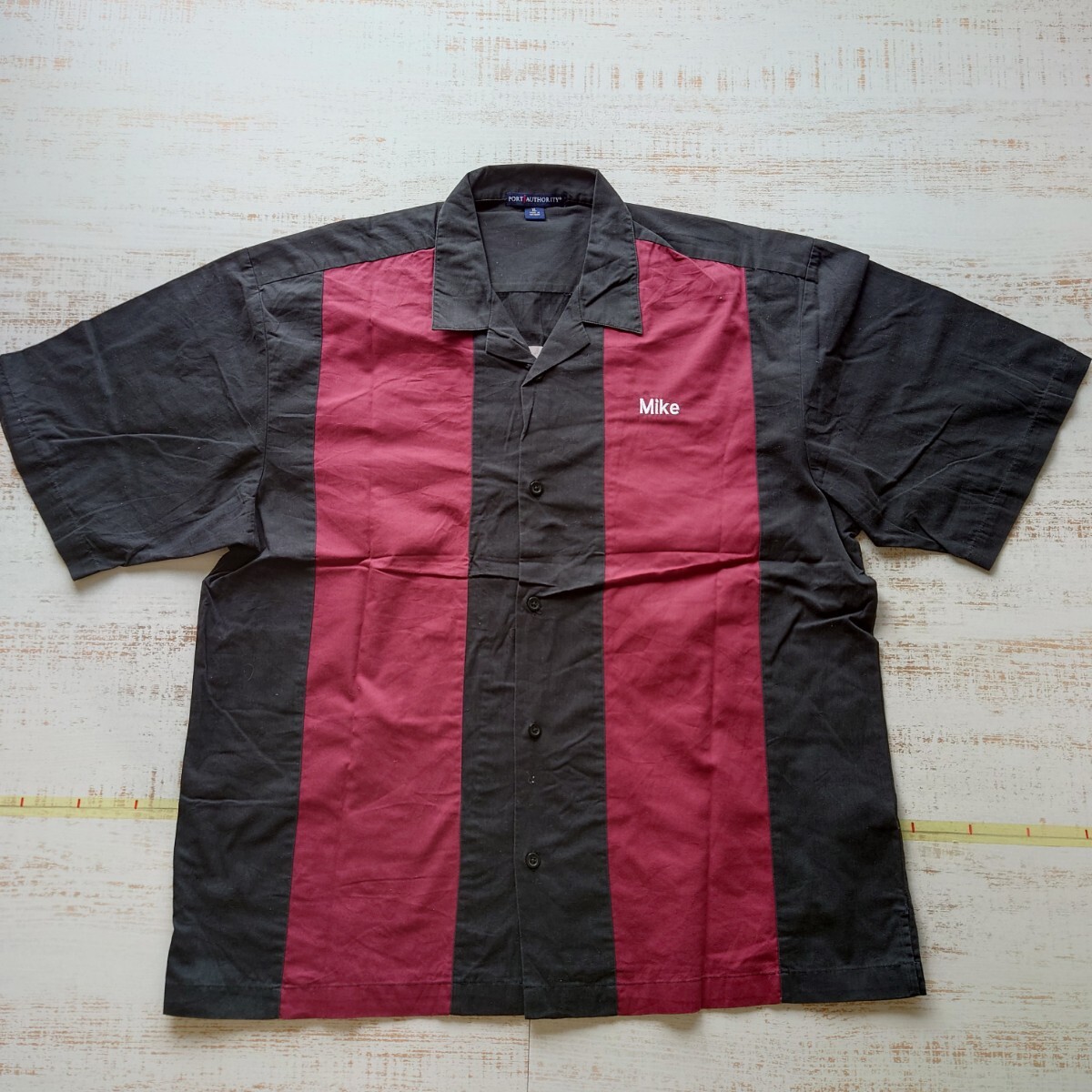 R52 ボーリング シャツ XL 半袖 アメリカ 古着 バック 前 刺繍 開襟 アロハ 切り替え 企業 ネーム 建築関係 会社 2L sports Authority レア