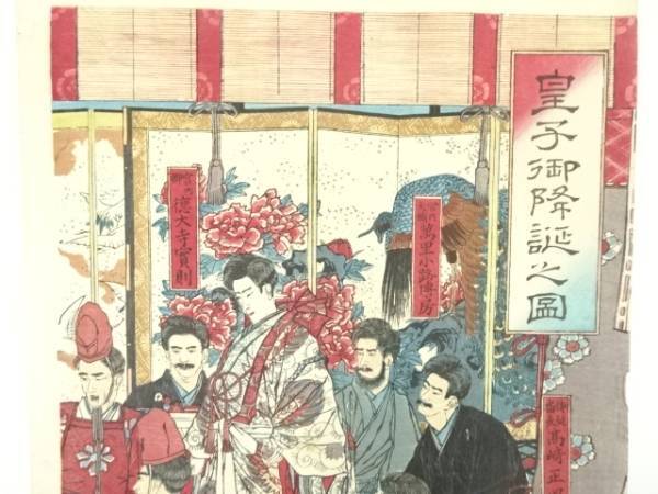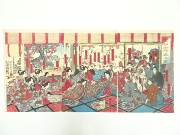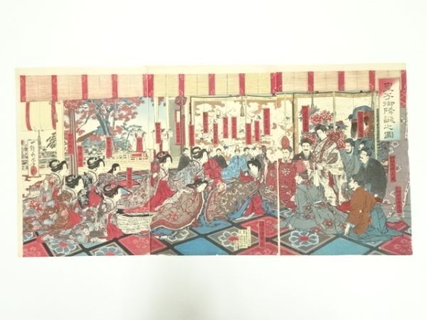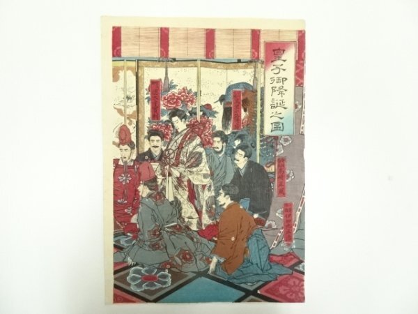 ys7004773; 明治期 後藤芳景 皇子御降誕之図 3枚続 手摺木版画【道】