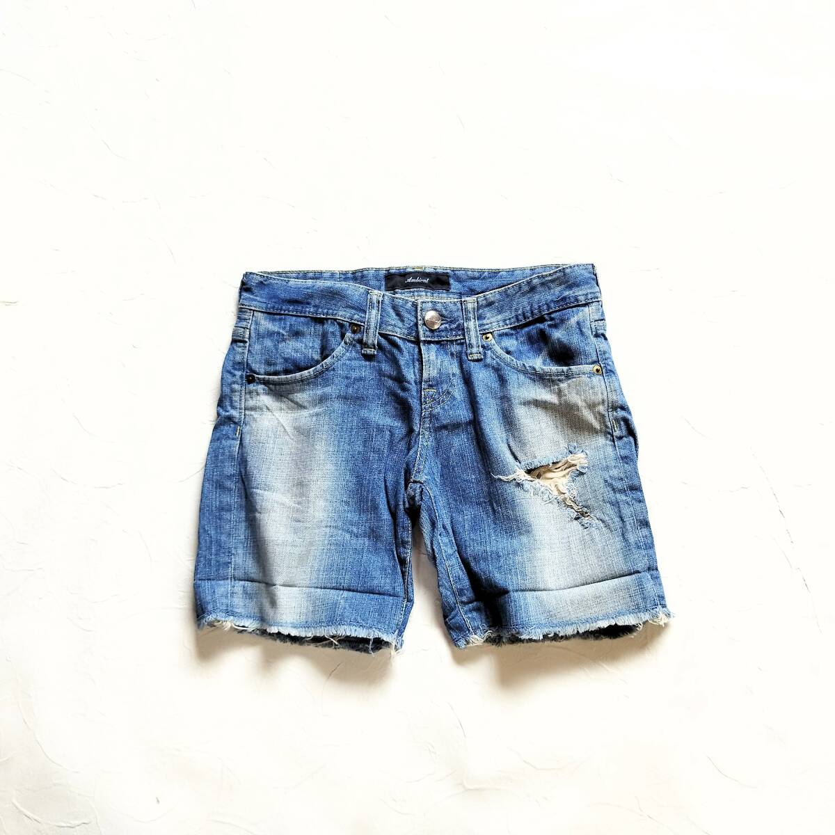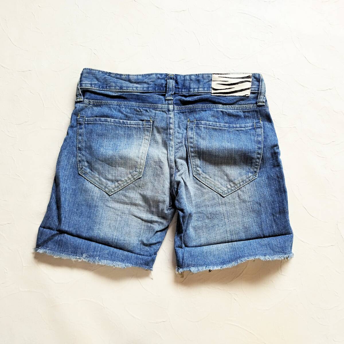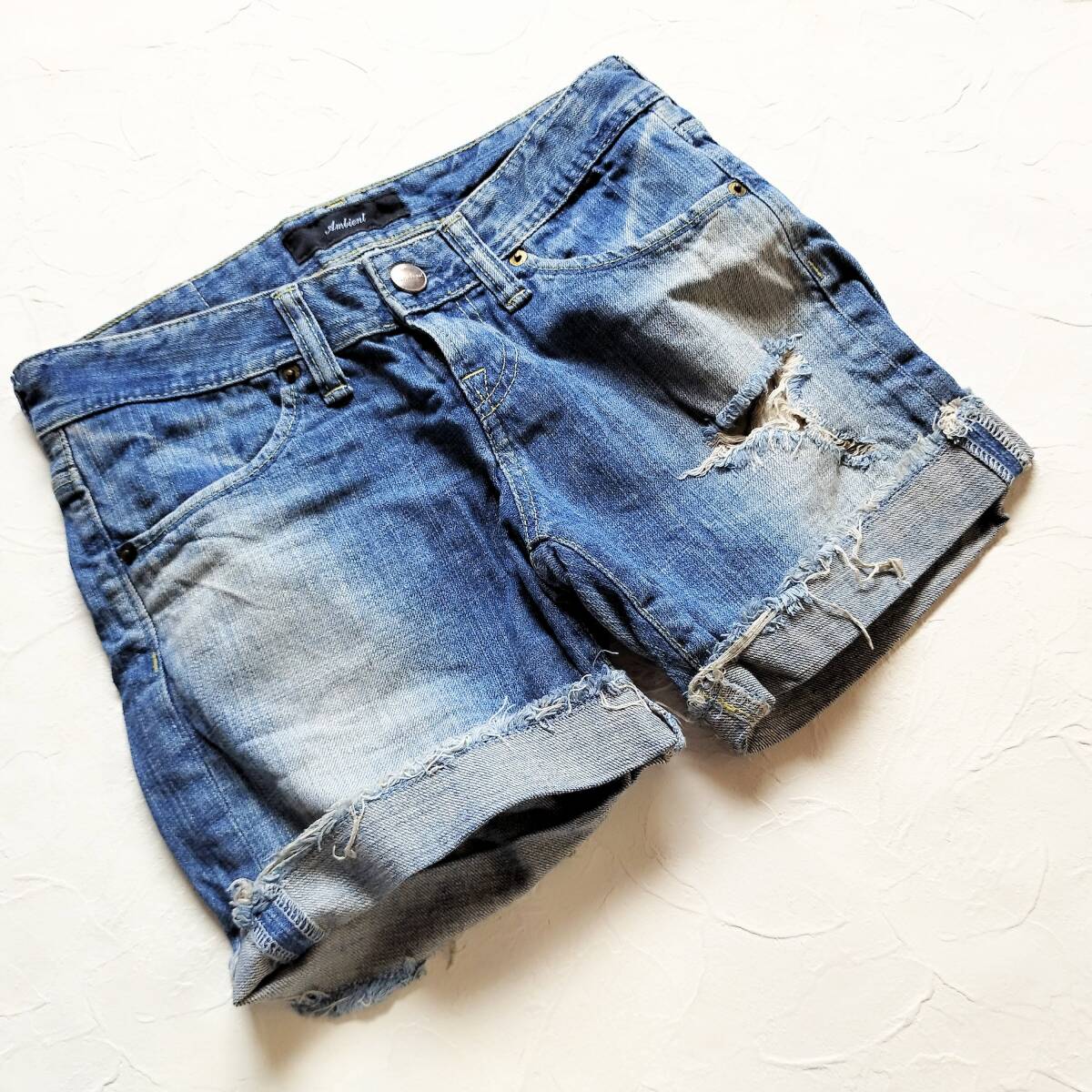 * AMBIENT * ダメージデニムのローライズショートパンツです♪( * ´ ∇ ` * ) 程よいウォッシュ加工とカットオフされた裾など ヴィンテージな表現にこだわった一着です。 ロールアップスタイルも可愛く、ゼブラ柄のレザーパッチもオシャレですよ♪ ◇ コンディション USEDです。 さほど使用していません。 香水の匂いが多少致します。 目立つダメージはなく、革パッチなどもきれいな状態です♪ もとよりダメージやウオッシュ加工などあります。 ロールアップがデフォルトでしたが、縫い留めはしていないので伸ばすことも出来ます。 個人保管品ですので、おおらかな方に…☆ ◇ カラー ・・・ インディゴ ※変色のように見える箇所は光の加減です。 ◇ 素 材 ・・・ 画像の品質表示ラベルにてご確認下さい。 ◇ 裏 地 ・・・ なし ◇ 仕 様 ・・・ ジップ開閉 4ポケット ローライズ ◇ 公式サイズ ・・・ 01 S相当 ◇ 平置き実寸はおよそ下記の通りです。(センチ単位) ウエスト:38 前股上:19 股下:18 総丈:36(伸ばした状態) わたり幅:27 ヒップ(およその位置):44 ほど ☆ コーデに使用した他アイテム・アクセサリー類は付属しません…☆ *^^* ☆ 個人保管品ですので小さな見落としの際にはご容赦下さい。 「そんなの、全然いいさ♪」というおおらかな方のみ、ご入札をお願い致します…☆ 。。。。。。。。。。。。。。。。。。。。。。。。。。。。。。。。。。。。。。。。。。。。。。。。。。。。。。 ★ その他、洋服・クツ・雑貨 など よろず出品中。 ほとんどのお品は、同梱可能です♪ どうぞお越しくださいませ…☆