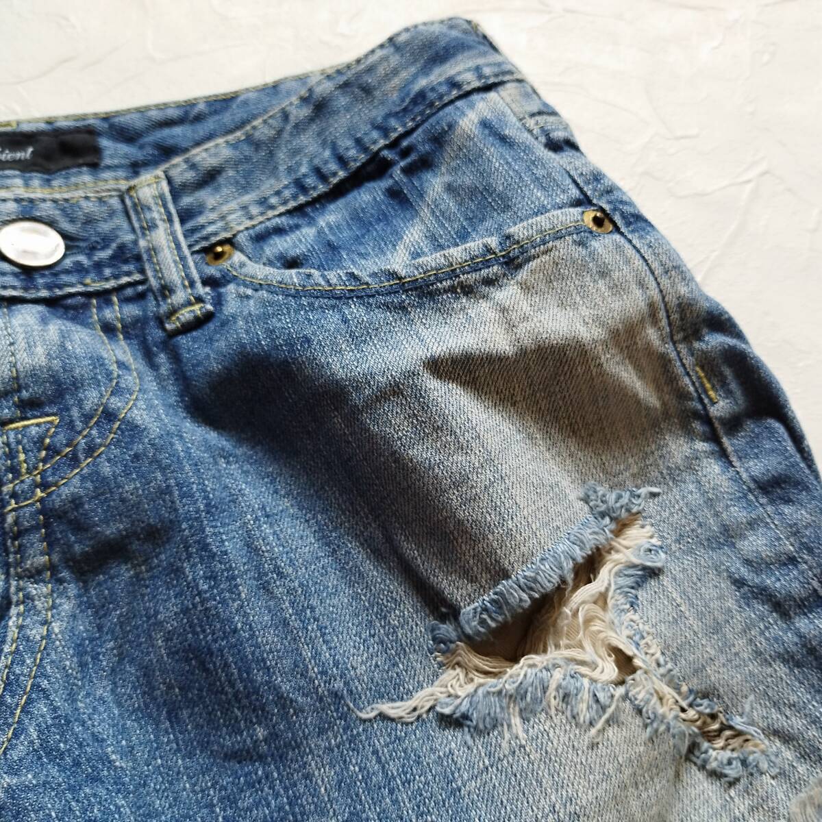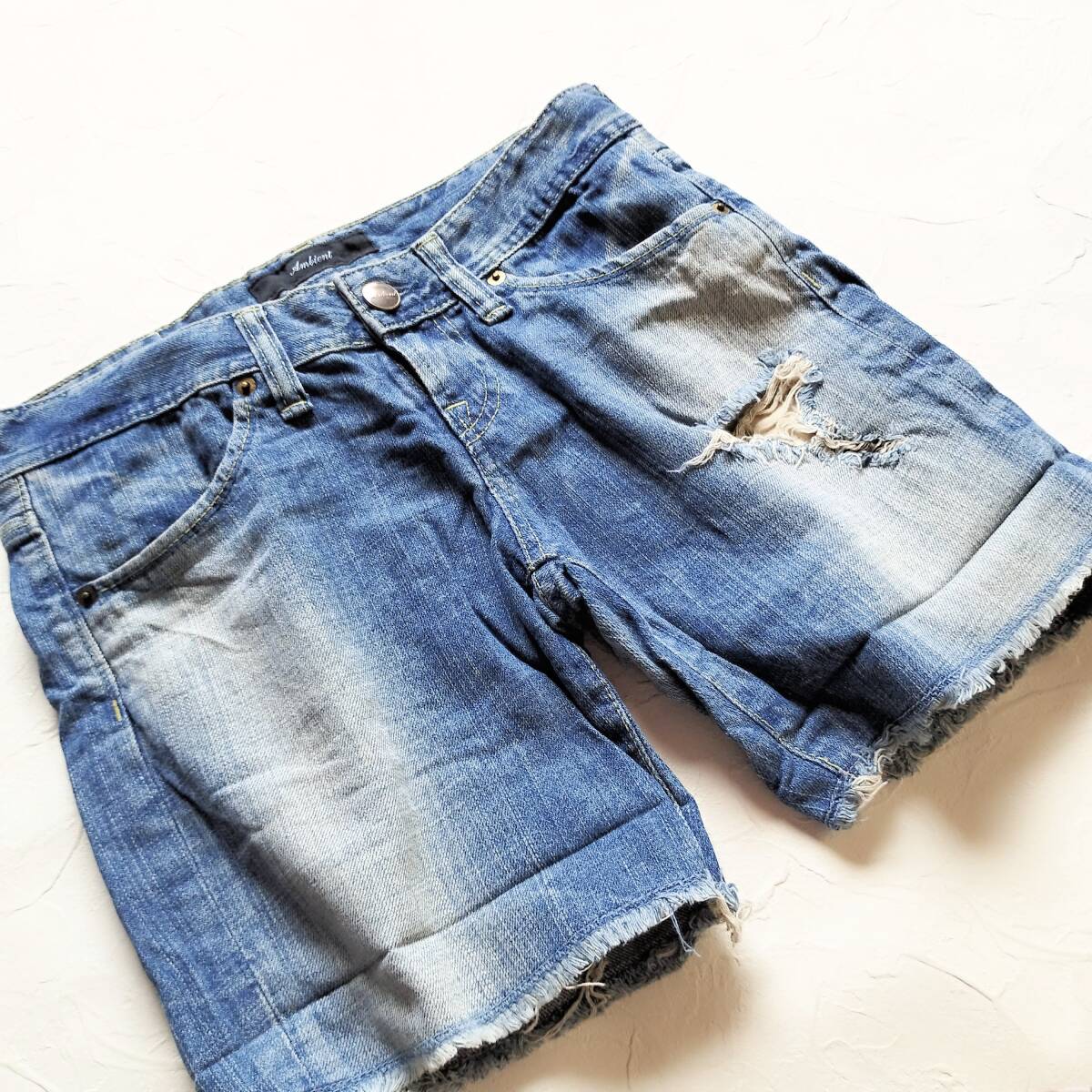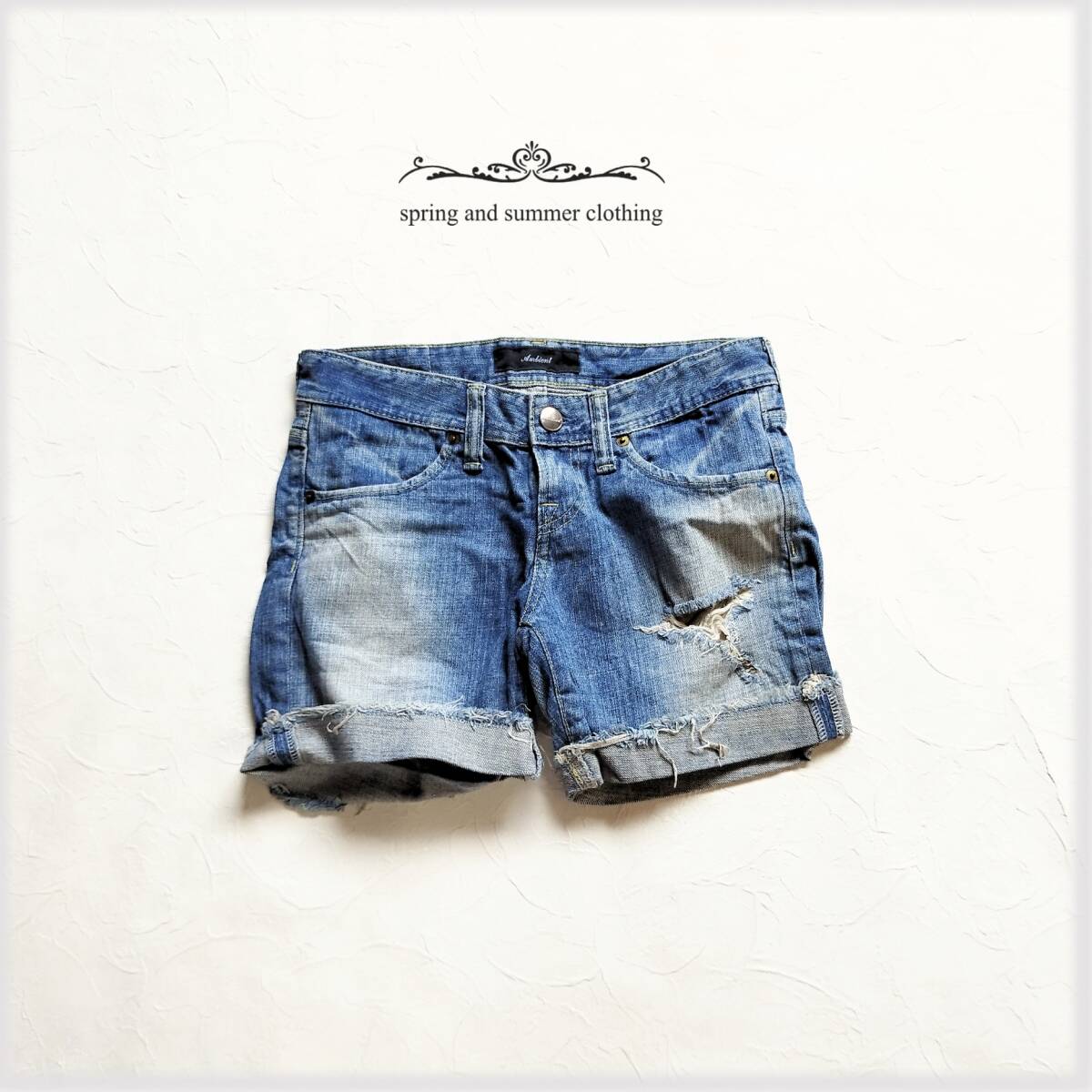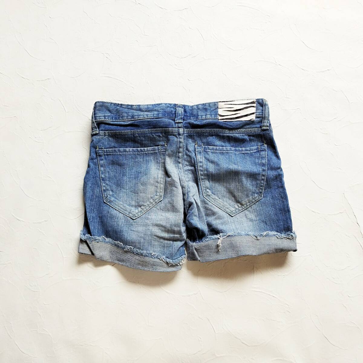* AMBIENT * ダメージデニムのローライズショートパンツです♪( * ´ ∇ ` * ) 程よいウォッシュ加工とカットオフされた裾など ヴィンテージな表現にこだわった一着です。 ロールアップスタイルも可愛く、ゼブラ柄のレザーパッチもオシャレですよ♪ ◇ コンディション USEDです。 さほど使用していません。 香水の匂いが多少致します。 目立つダメージはなく、革パッチなどもきれいな状態です♪ もとよりダメージやウオッシュ加工などあります。 ロールアップがデフォルトでしたが、縫い留めはしていないので伸ばすことも出来ます。 個人保管品ですので、おおらかな方に…☆ ◇ カラー ・・・ インディゴ ※変色のように見える箇所は光の加減です。 ◇ 素 材 ・・・ 画像の品質表示ラベルにてご確認下さい。 ◇ 裏 地 ・・・ なし ◇ 仕 様 ・・・ ジップ開閉 4ポケット ローライズ ◇ 公式サイズ ・・・ 01 S相当 ◇ 平置き実寸はおよそ下記の通りです。(センチ単位) ウエスト:38 前股上:19 股下:18 総丈:36(伸ばした状態) わたり幅:27 ヒップ(およその位置):44 ほど ☆ コーデに使用した他アイテム・アクセサリー類は付属しません…☆ *^^* ☆ 個人保管品ですので小さな見落としの際にはご容赦下さい。 「そんなの、全然いいさ♪」というおおらかな方のみ、ご入札をお願い致します…☆ 。。。。。。。。。。。。。。。。。。。。。。。。。。。。。。。。。。。。。。。。。。。。。。。。。。。。。。 ★ その他、洋服・クツ・雑貨 など よろず出品中。 ほとんどのお品は、同梱可能です♪ どうぞお越しくださいませ…☆
