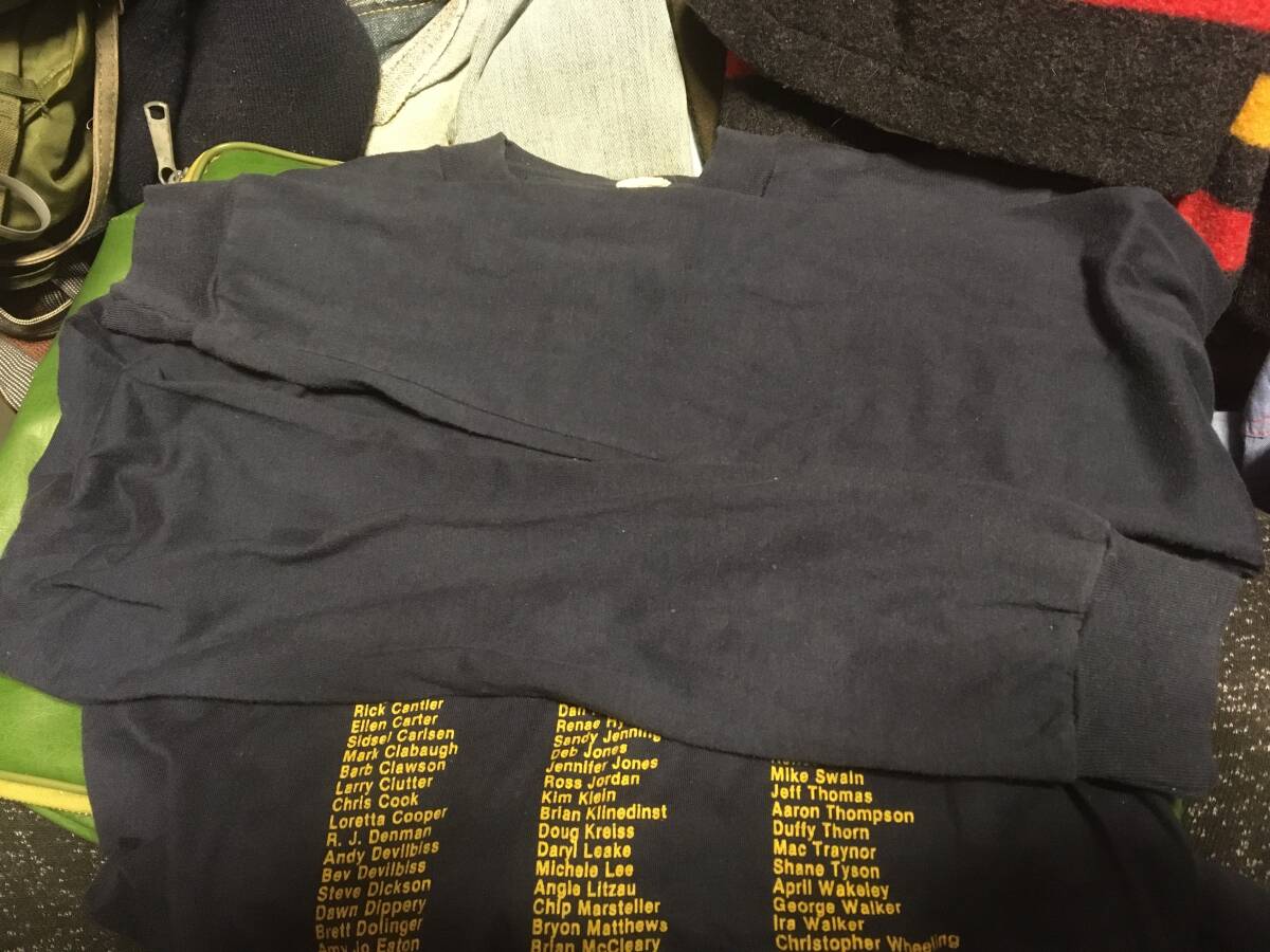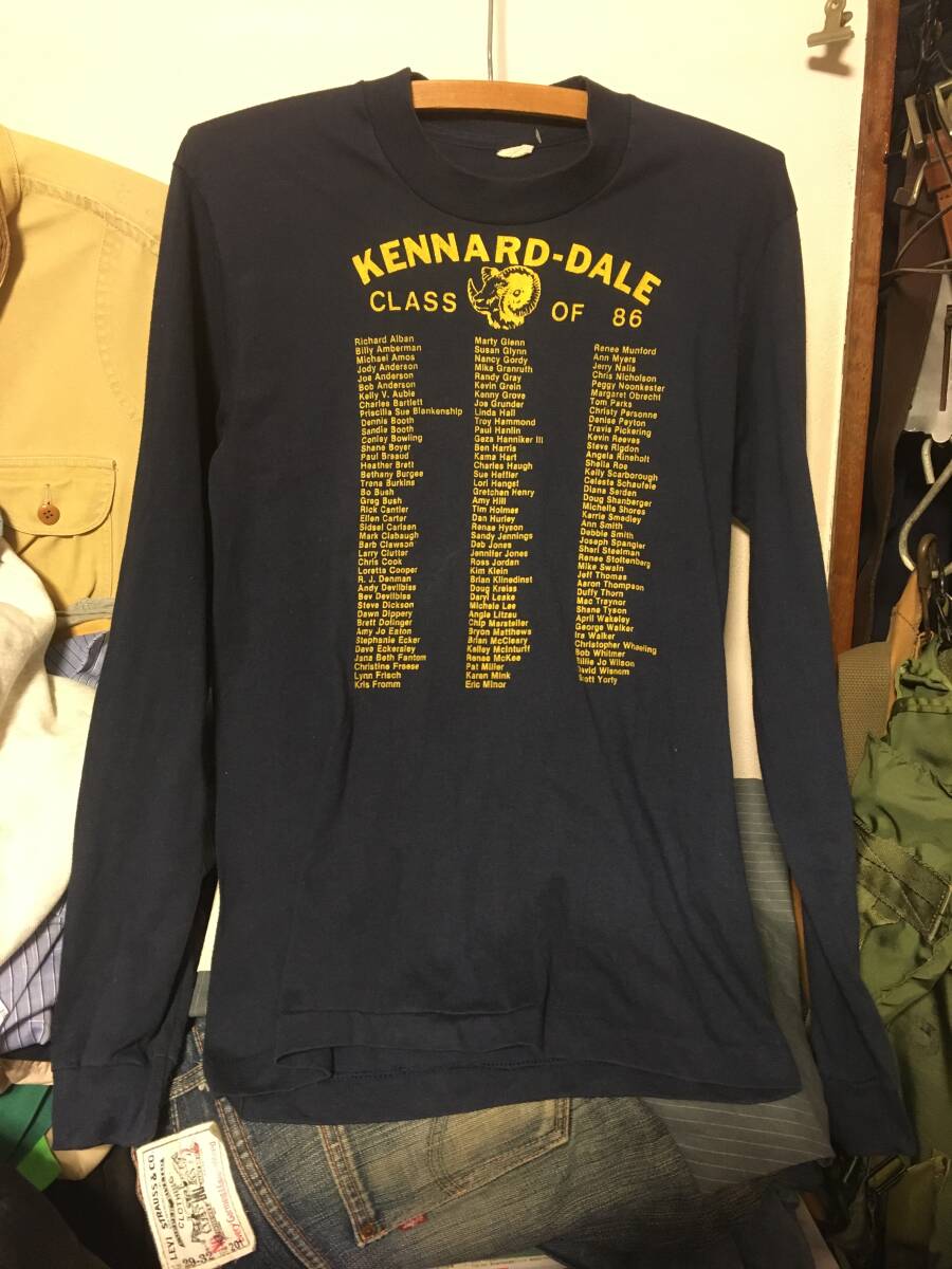 2111 80'sビンテージ卒業生プリントL/S長袖TシャツOLDオールド カレッジUSED古着NAVYネイビー紺
