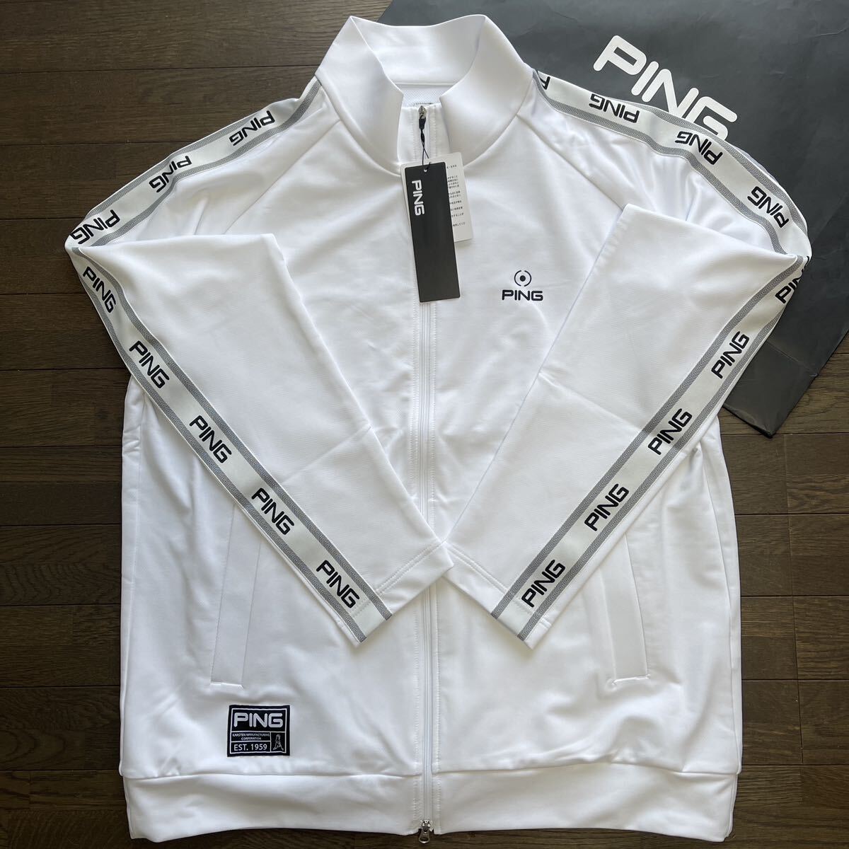 サイズ(LL)(メーカー参照)平置き採寸:身幅58cm/着丈71cn/ラグランフリーショルダー/素材:ポリエステル.ポリウレタン製/ダンボール構造裏鹿の子蒸れ軽減弾力性ストレッチ加工/ダブルジップアップ/ポケット×2/カラーホワイト×ブラック両サイドPING連ロゴデザイン+PINGターゲットマーク付+Mr.Pingモチーフエンブレムロゴワッペン付+希少上質ゴールドPINGラベルタグ付/最新TSI識別タグ付/直営店希少完売大特価商品(定価24,200円税込)宜しくお願い致します。写真撮影での色合いが遮光率により実際の色と異なる場合が有ります。予めご了承願います(((価値観の相違など回避の為ピンゴルフ商品に不慣れな方や色合いが特に気になる方はご遠慮下さい。最終お取引完了可能な方でのご落札をお願い致します。