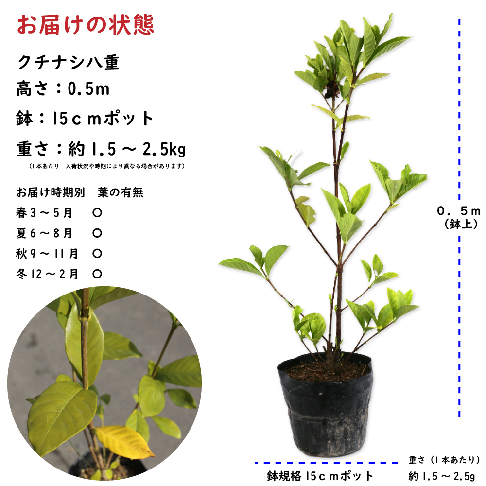 クチナシ八重 0.6m 15cmポット 10個 苗