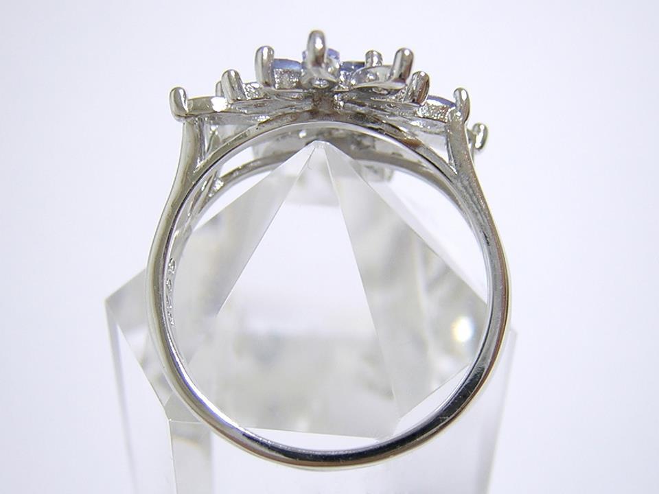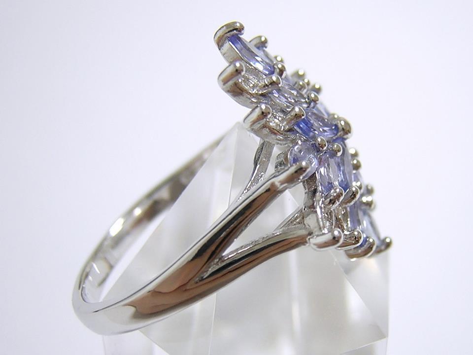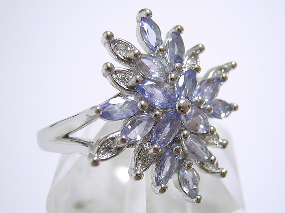 天然タンザナイトとキュービックジルコニアを使用したデザインリングです。 【中石】天然タンザナイト 【産地】タンザニア産 【処理】非加熱 【カット】マーキスカット 【脇石】キュービックジルコニア 【重さ】3.2g 【サイズ】13.5号 (お直しは承れません) デザイン部:縦19mm×横20mm 【素材】シルバー925 (14金ホワイトゴールド仕上げ) 【刻印】S925 【状態】新品 ※地金部分に製作時からの微細な小傷やスレがあります。 |