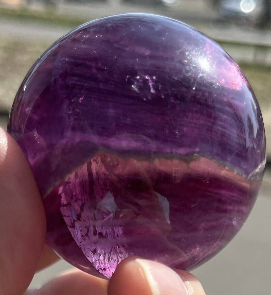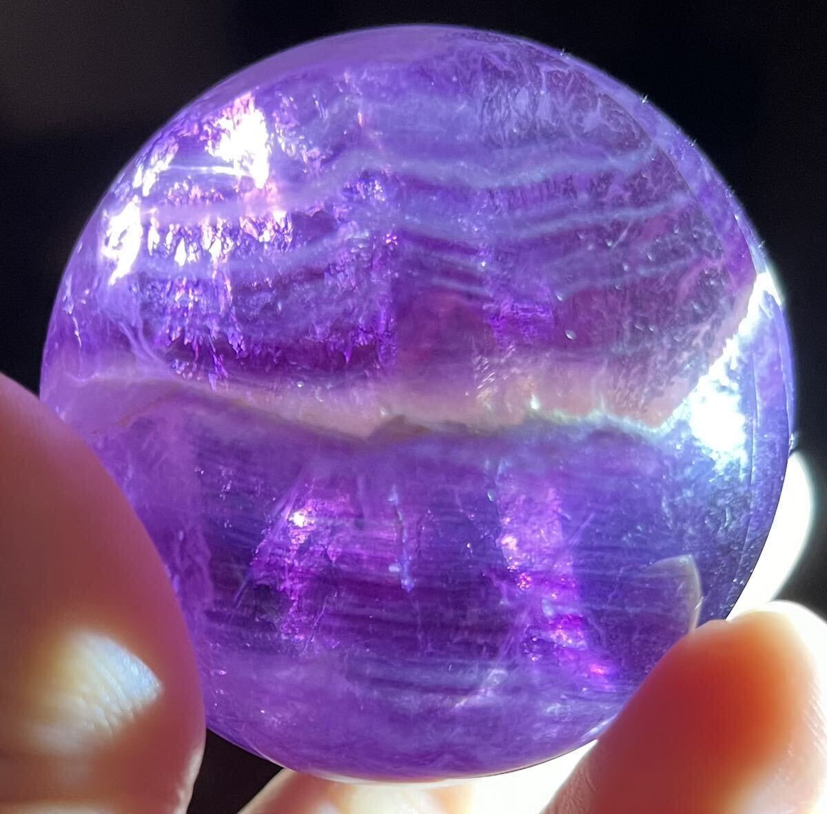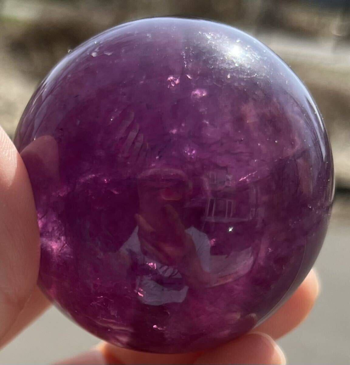 約51mm玉 ご覧の様に、ピンクと縞模様のコンビネーションが綺麗なフローライト天然石のソフィアで、レインボーが見られるところは、光の加減で写真よりもっと美しくご覧になれます。一枚目の写真はライトアップしています。周りの景色が映り込んでいる写真がございます事、ご了承願います。ピンクのフローライトは、「魅力を高める」という効果があります。心を穏やかにし、内面を磨いてくれるピンクのフローライト。内面が磨かれることにより表情を豊かにし、恋愛の運気を高めてくれるといわれています。また、恋愛によるストレスの軽減や、異性間の人間関係を円滑にする働きもあることが特徴です。恋愛のお守りとしてはもちろん、自分磨きをしたい人の宝石としてもぴったりです。浄化してお届け致します。天然石ならではのナチュラルライン等ある場合がございます。人為的傷等ございません。尚他のカテゴリーにも同じ物を出品しています。日頃の感謝を込めてSpecial ラストdiscount