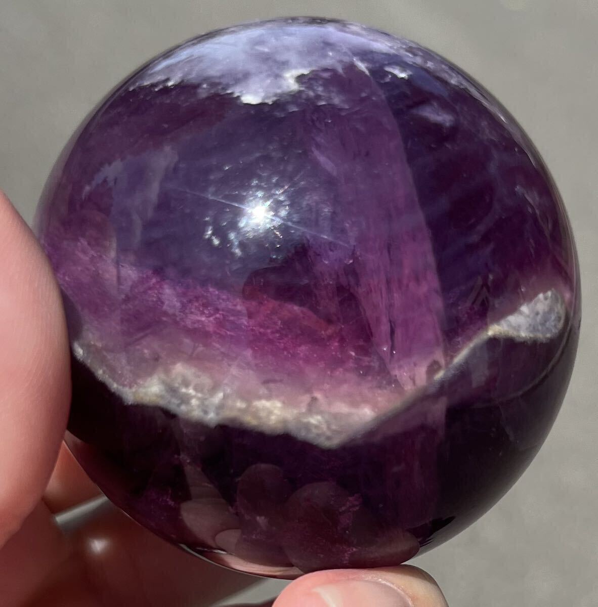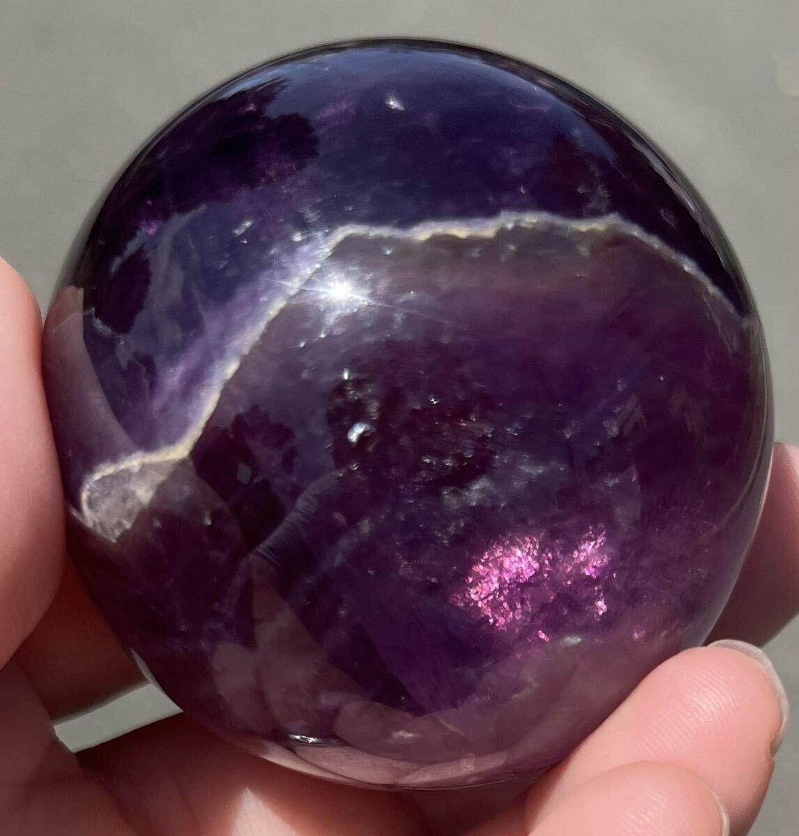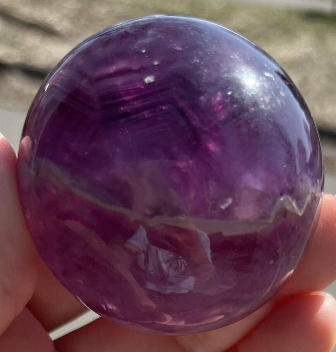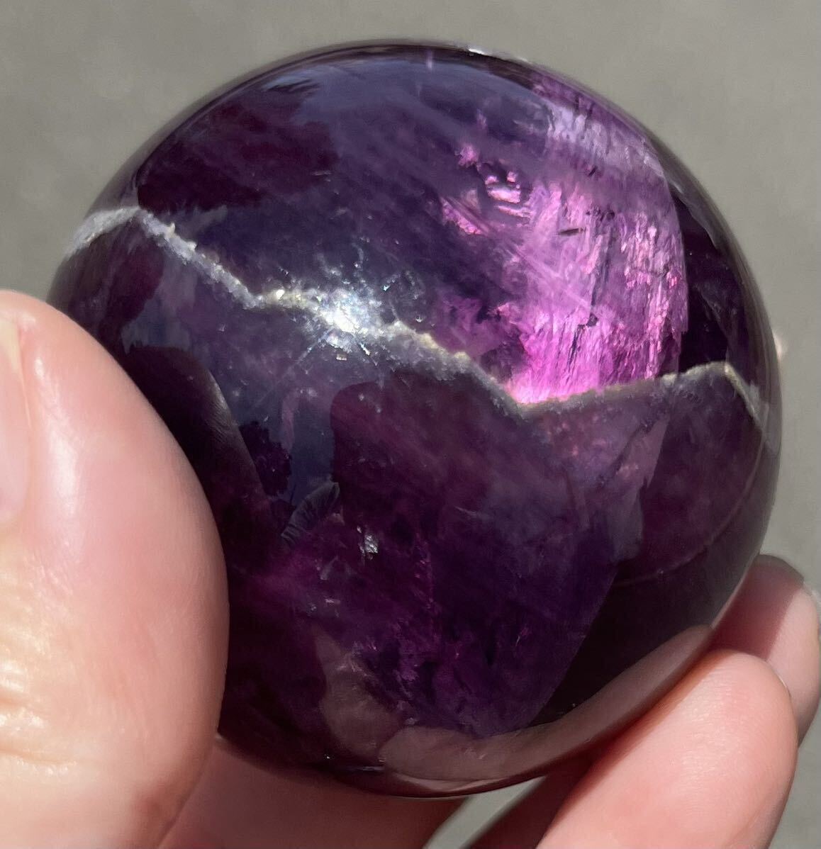 約51mm玉 ご覧の様に、ピンクと縞模様のコンビネーションが綺麗なフローライト天然石のソフィアで、レインボーが見られるところは、光の加減で写真よりもっと美しくご覧になれます。一枚目の写真はライトアップしています。周りの景色が映り込んでいる写真がございます事、ご了承願います。ピンクのフローライトは、「魅力を高める」という効果があります。心を穏やかにし、内面を磨いてくれるピンクのフローライト。内面が磨かれることにより表情を豊かにし、恋愛の運気を高めてくれるといわれています。また、恋愛によるストレスの軽減や、異性間の人間関係を円滑にする働きもあることが特徴です。恋愛のお守りとしてはもちろん、自分磨きをしたい人の宝石としてもぴったりです。浄化してお届け致します。天然石ならではのナチュラルライン等ある場合がございます。人為的傷等ございません。尚他のカテゴリーにも同じ物を出品しています。日頃の感謝を込めてSpecial ラストdiscount