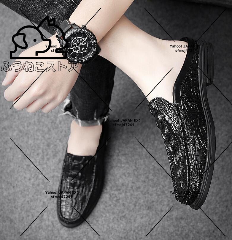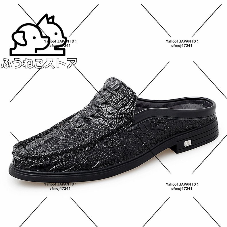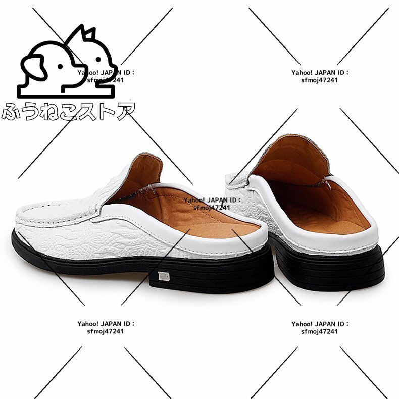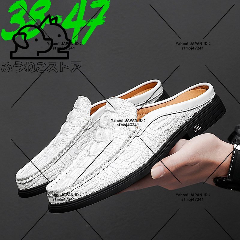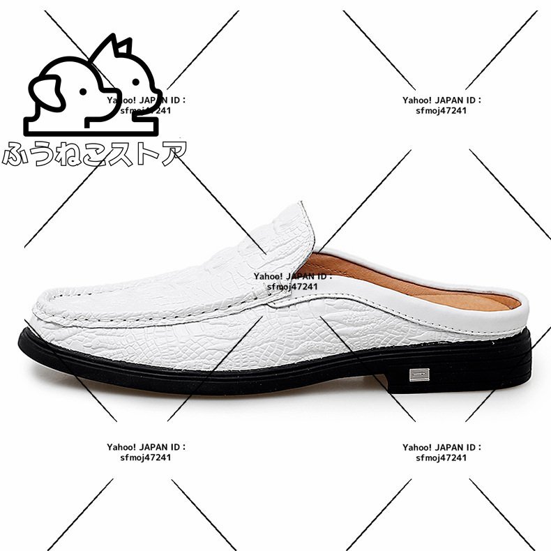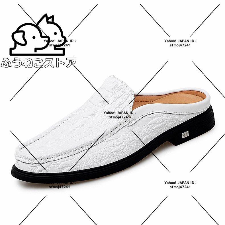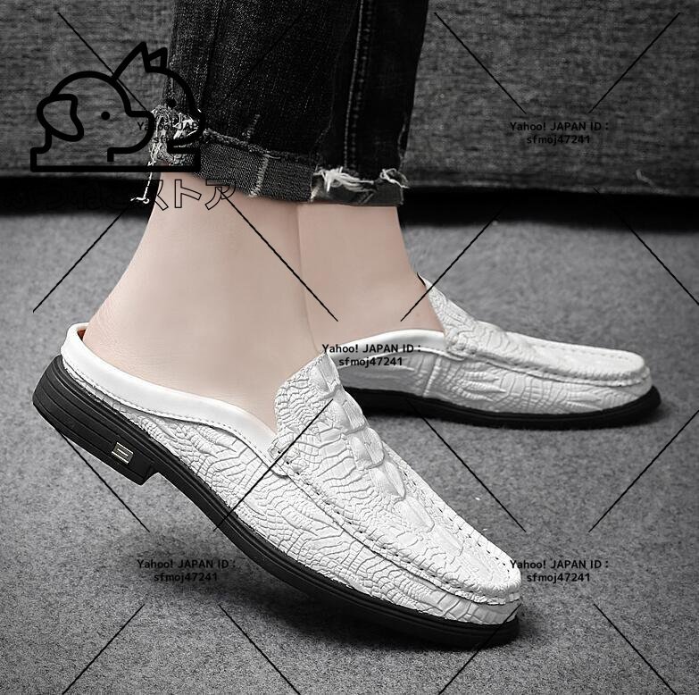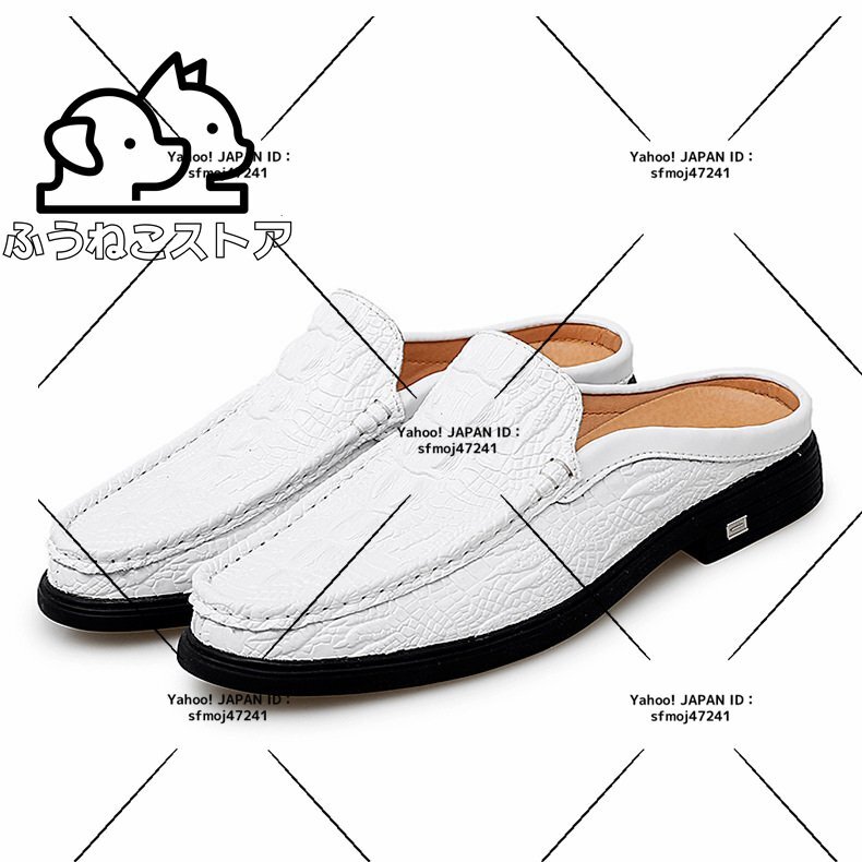 新品ビジネスサンダル メンズ スリッポン オフィスサンダル スリッパ ビジネスシューズ ワニ柄紳士靴一瞬で履ける 白26.0cm