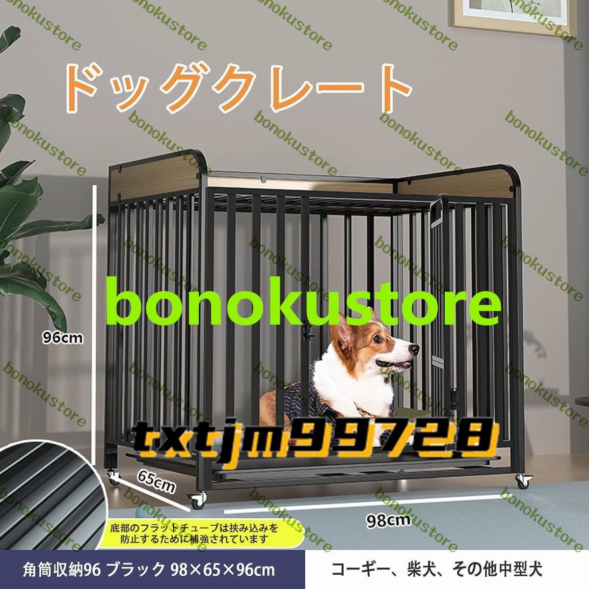 ペットケージ 屋根付き カゴ ドッグクレート 大型犬 中型犬トイレ ノイズ防止 4輪 錆びにくい 亜鉛メッキ 大胆な四角いチューブ